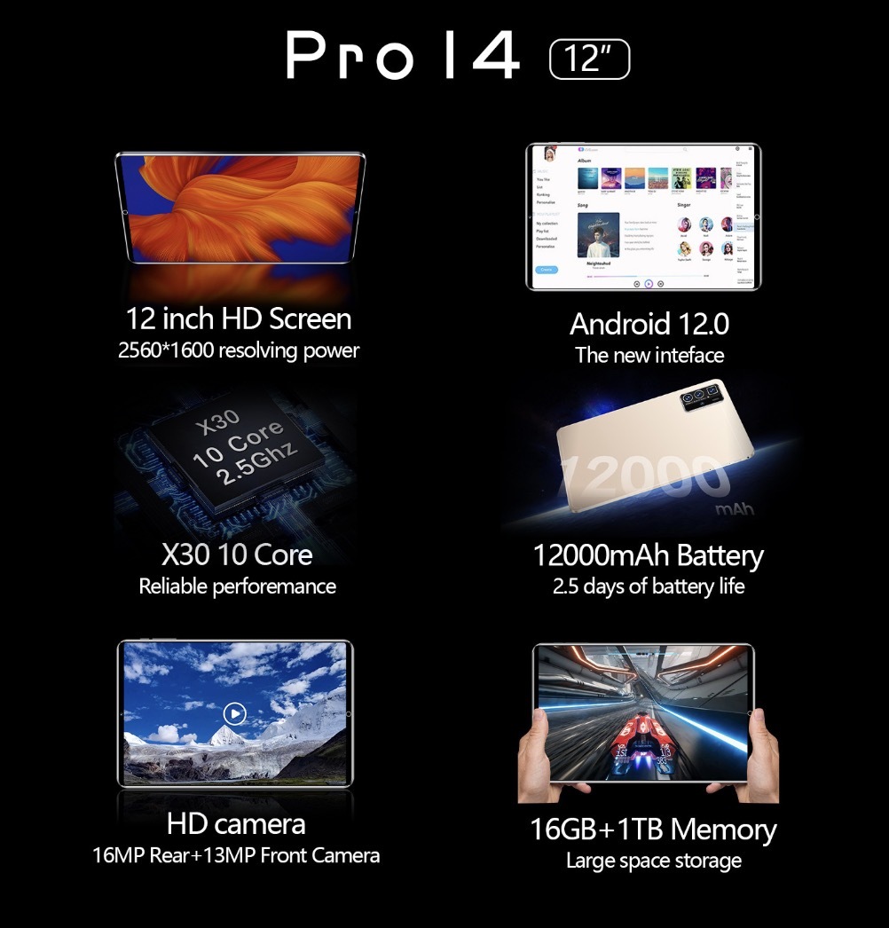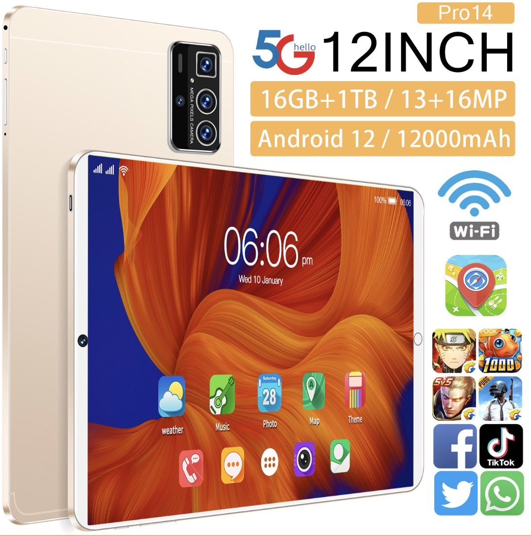 ●状態:新品未使用 12.0インチ Wi-fiモデル タブレット 最新Android12搭載タブレット 超軽量で薄く使い勝手が良く、仕事・勉強・出張など、持ち運びにも最適です。 ■商品特徴 Wi-Fi、Bluetooth、GPS、通話等の多機能付き安価SIMフリータブレットです。SIMカードがなくてもWi-Fi経由でインタネットを利用できます。 ■該当商品はYouTube、U-NEXT、Amazonプライム、Netflix等の視聴アプリは問題なく可動します。 ■ スペック CPU:MTK6735 メモリー:16GB ストレージ:1TB 液晶サイズ:12.0インチ ファームウェア:Android 12.0 解像度:13MP+16MP I/Oポート:内蔵スピーカー、マイク、SIM (契約simカード使えかねます) バッテリー:12000mAh USB:Type-C WIFI:2.4 Gのみ対応