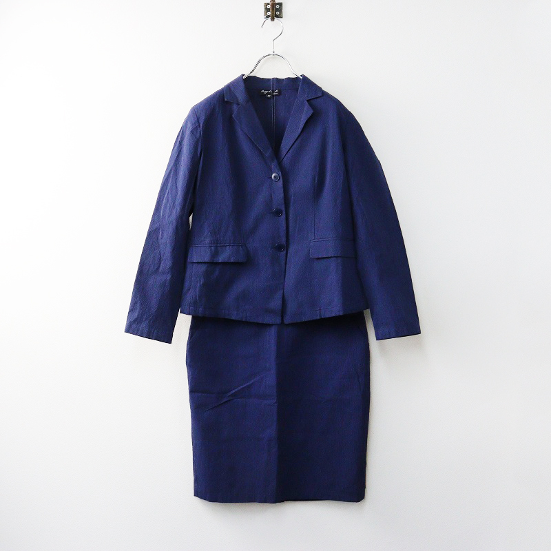 アニエスベー agnes b ストライプセットアップスーツ 38 ジャケット スカート ネイビー┃ベーシック【2400014658002】