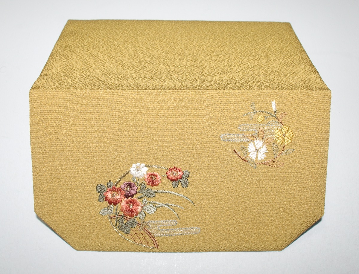 Product name: [佳]94)茶道具正絹懐紙入れ 辛子色系に菊とナデシコの刺繍の花丸 札入れ通帳ケース ハンドメイド 手作り 着物リメイク