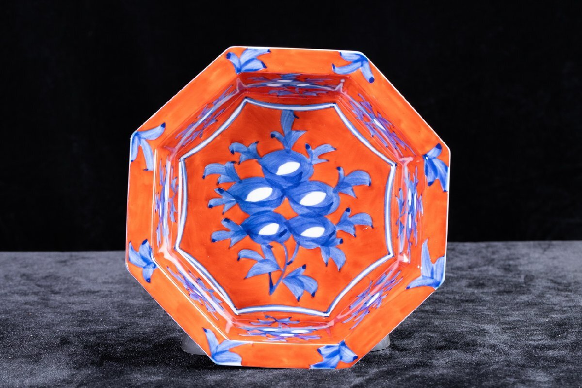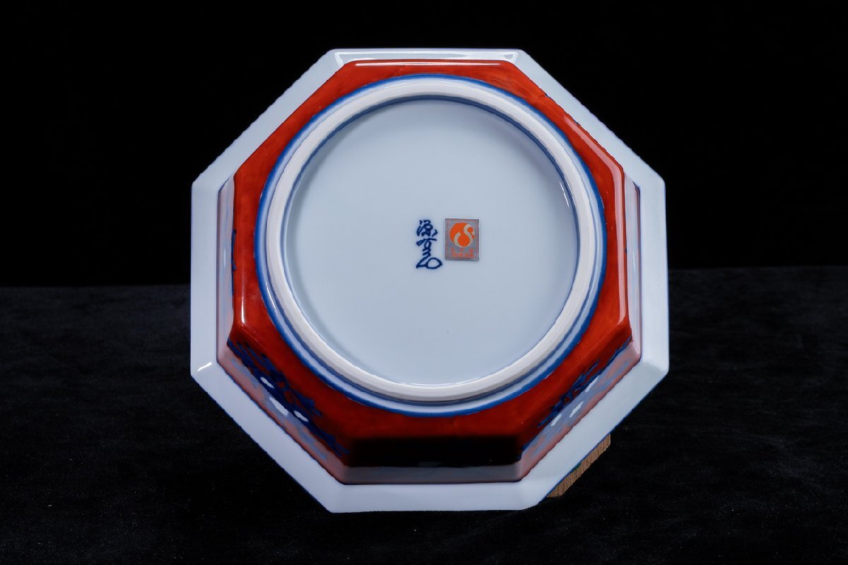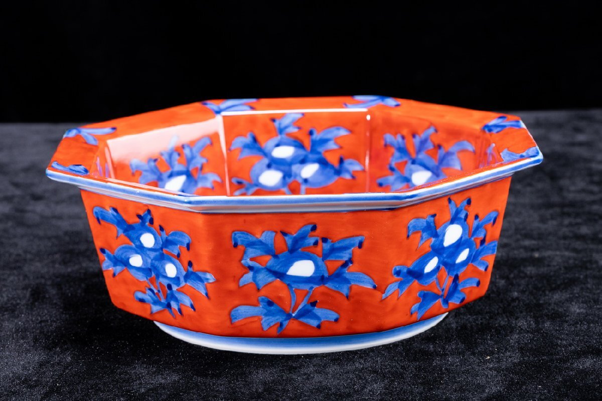 Product name: 【珍品堂】1円から P43-V04 古希記念 有田焼 館林源右衛門窯 吉村徳重 赤濃 牡丹紋 鉢 径20cm 時代物 共箱 木箱 名窯 和食器 骨董品 古美術