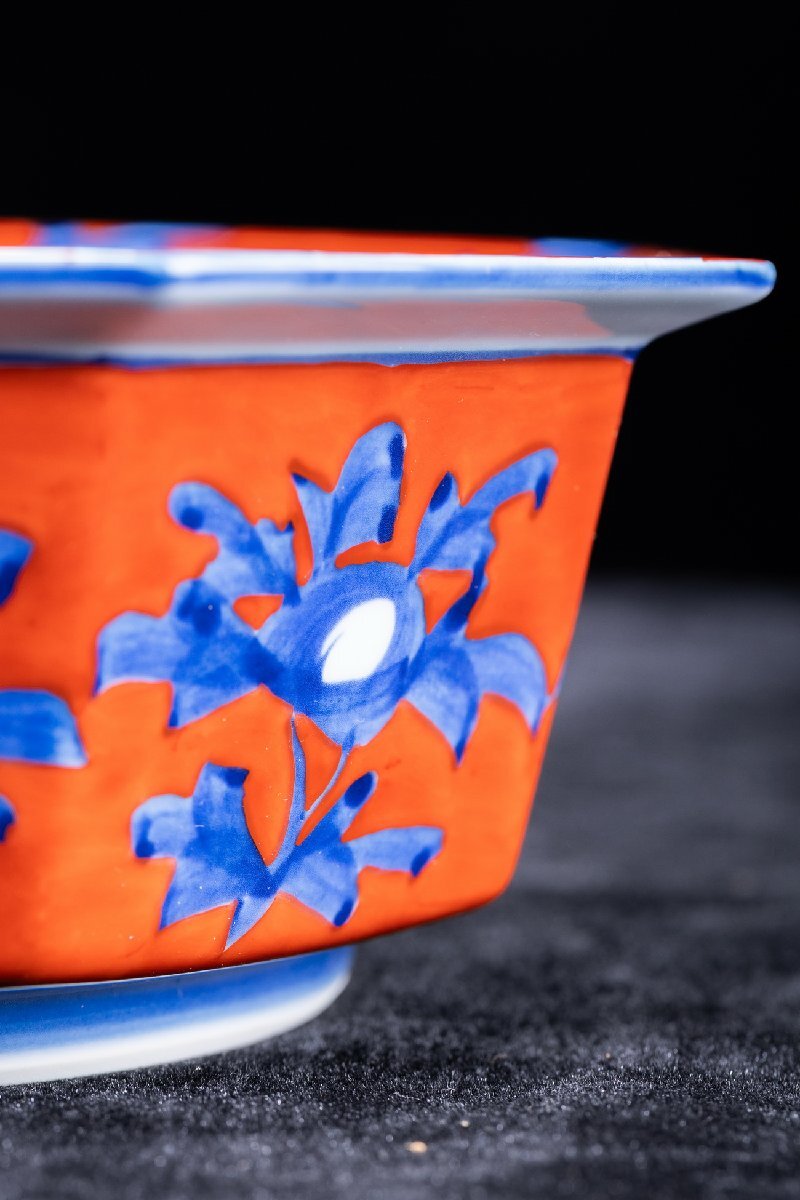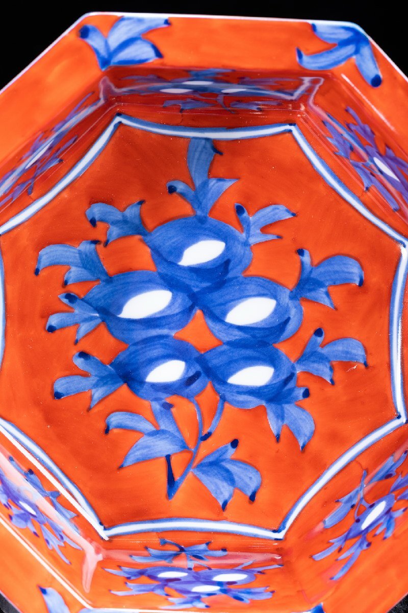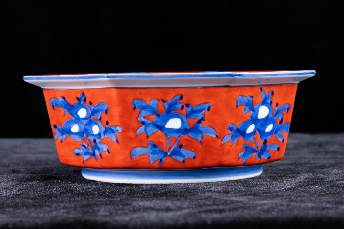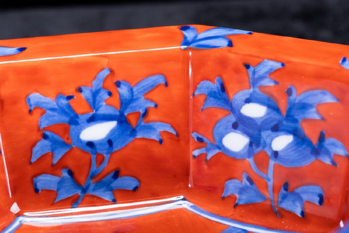 Product name: 【珍品堂】1円から P43-V04 古希記念 有田焼 館林源右衛門窯 吉村徳重 赤濃 牡丹紋 鉢 径20cm 時代物 共箱 木箱 名窯 和食器 骨董品 古美術