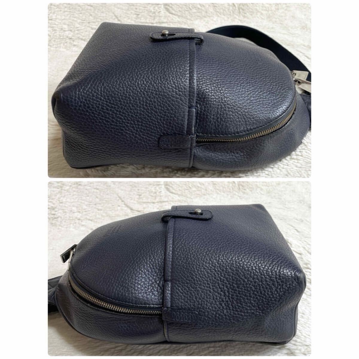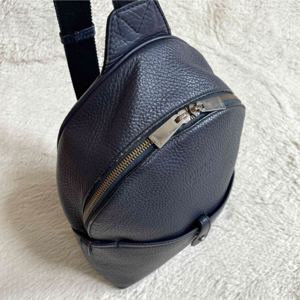 Product name: 希少 FURLA フルラ UOMO メンズ レザー ボディバッグ ショルダーバッグ ビジネスバッグ ネイビー 本革 クロスボディ シボ革 斜め掛け 紺
