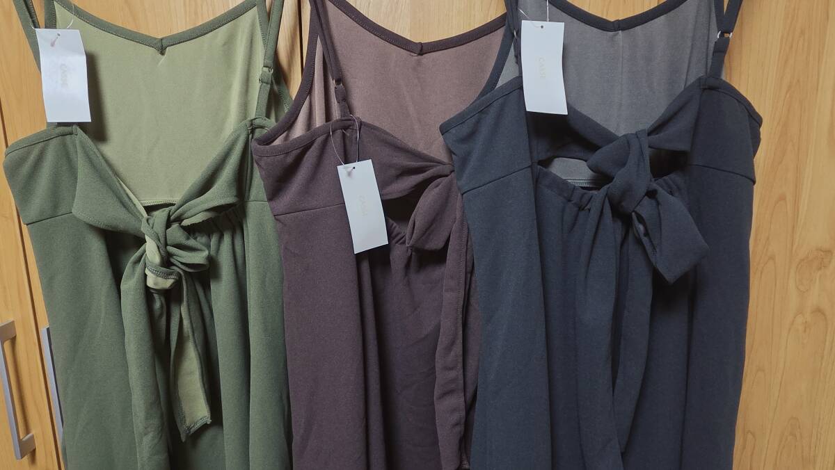 Product name: まとめて3着 未使用タグ付 CASSE レディース バックリボンワンピース カーキ(L-LL) / チャコールグレー モカ(3L-4L) 大きいサイズ 大量