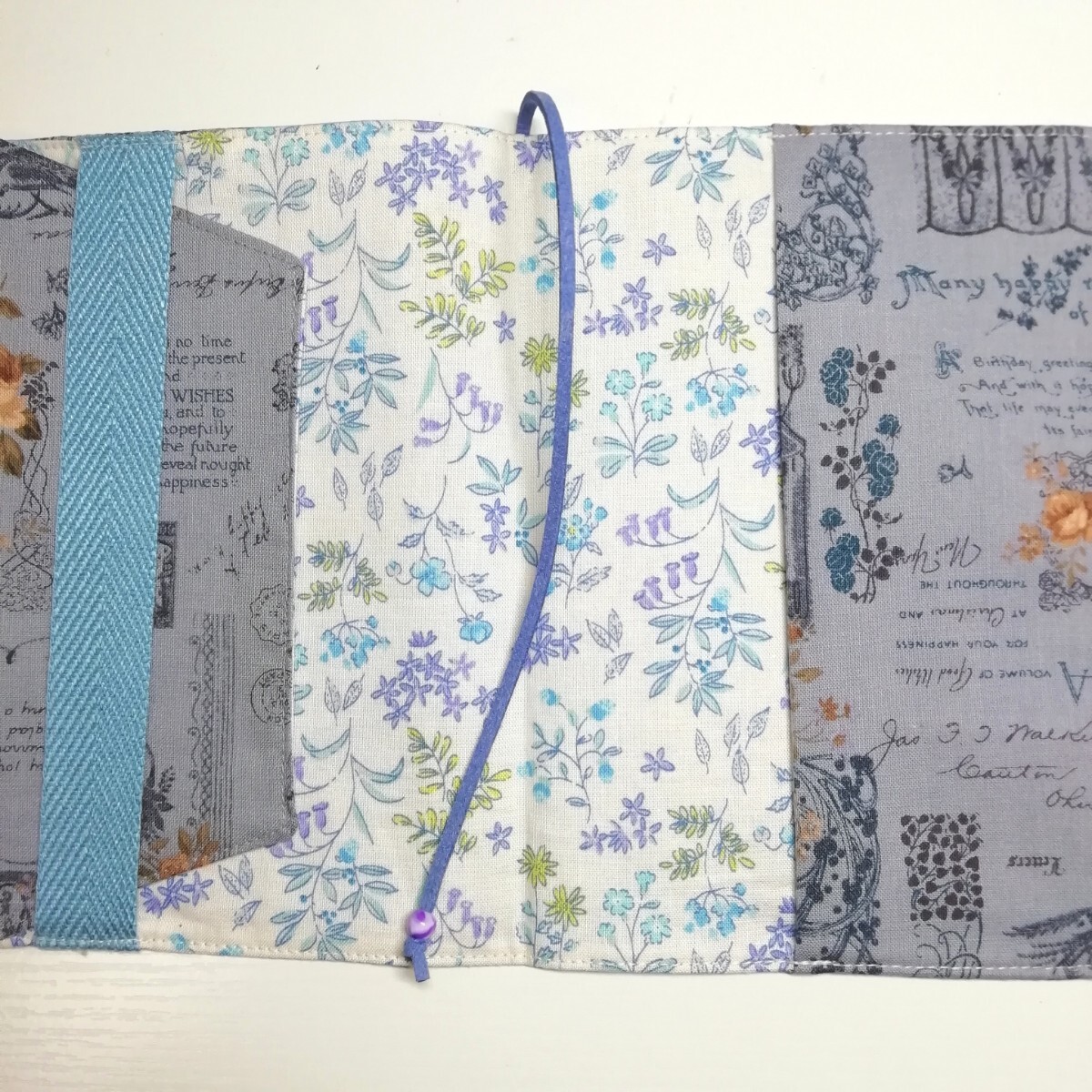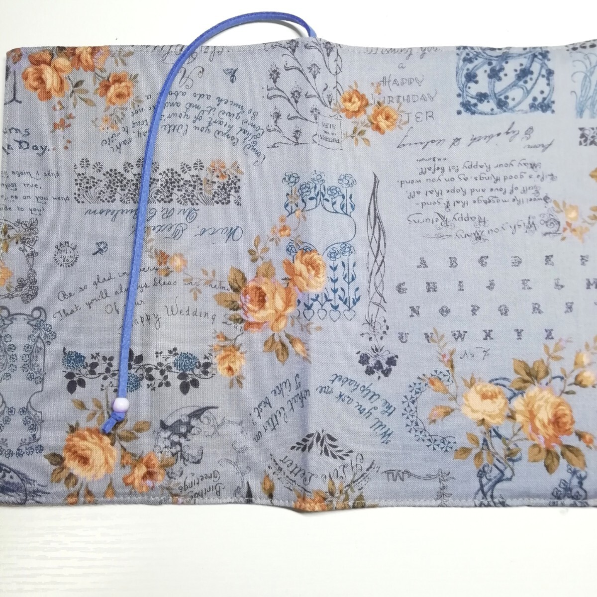 こちらはハンドメイドのブックカバーです。サイズは文庫本用で、広げた状態で、縦約16、横約30です。