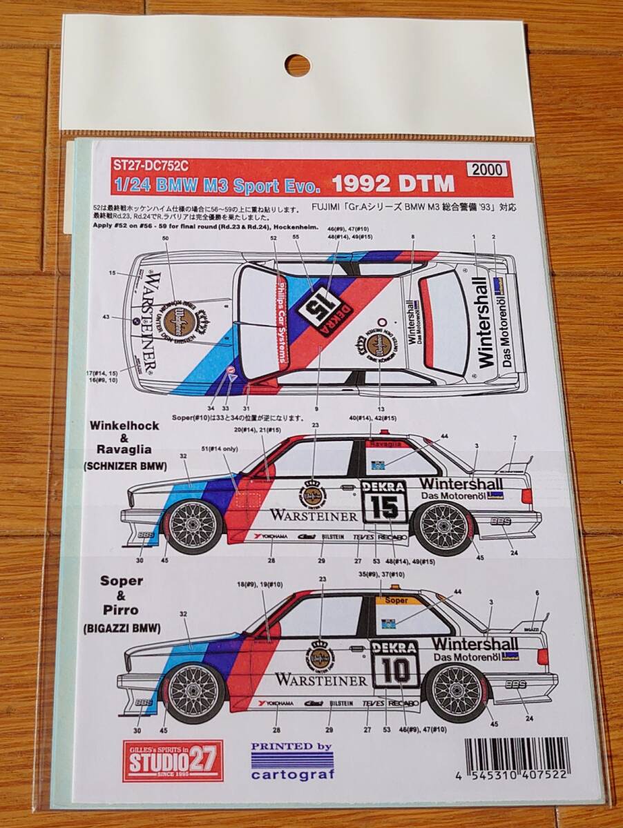 Product name: 1/24 スタジオ27 BMW M3 DTM 1992 デカール