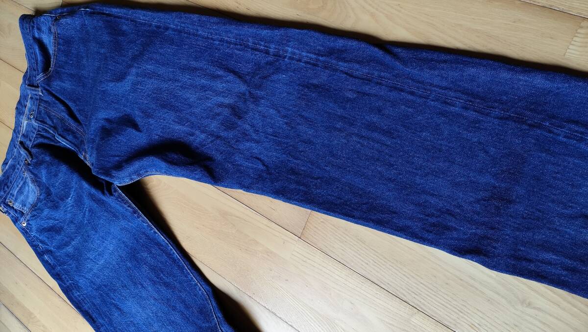 撮影が暗かったので少し濃い目に色が写っている感じですが実際はもう少し薄めのインディゴかと思います。
