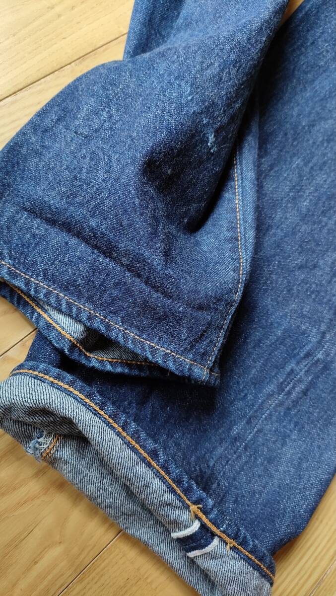 個人保管の為中古はもとより、新品でも多少の傷、汚れ等、ございます。写真にてご確認お願いいたします。右足の裾付近に若干大きなダメージ。全体的にやや色落ち、アタリや着用のシワ感が出てる箇所も所々あり。中古古着のコンディション。洗濯済み。長期の保管のため畳じわやシワ、折れあと等が御座います。神経質な方、完璧を求める方は、ご遠慮下さい。 ノークレーム、ノーリターンでお願いします。
