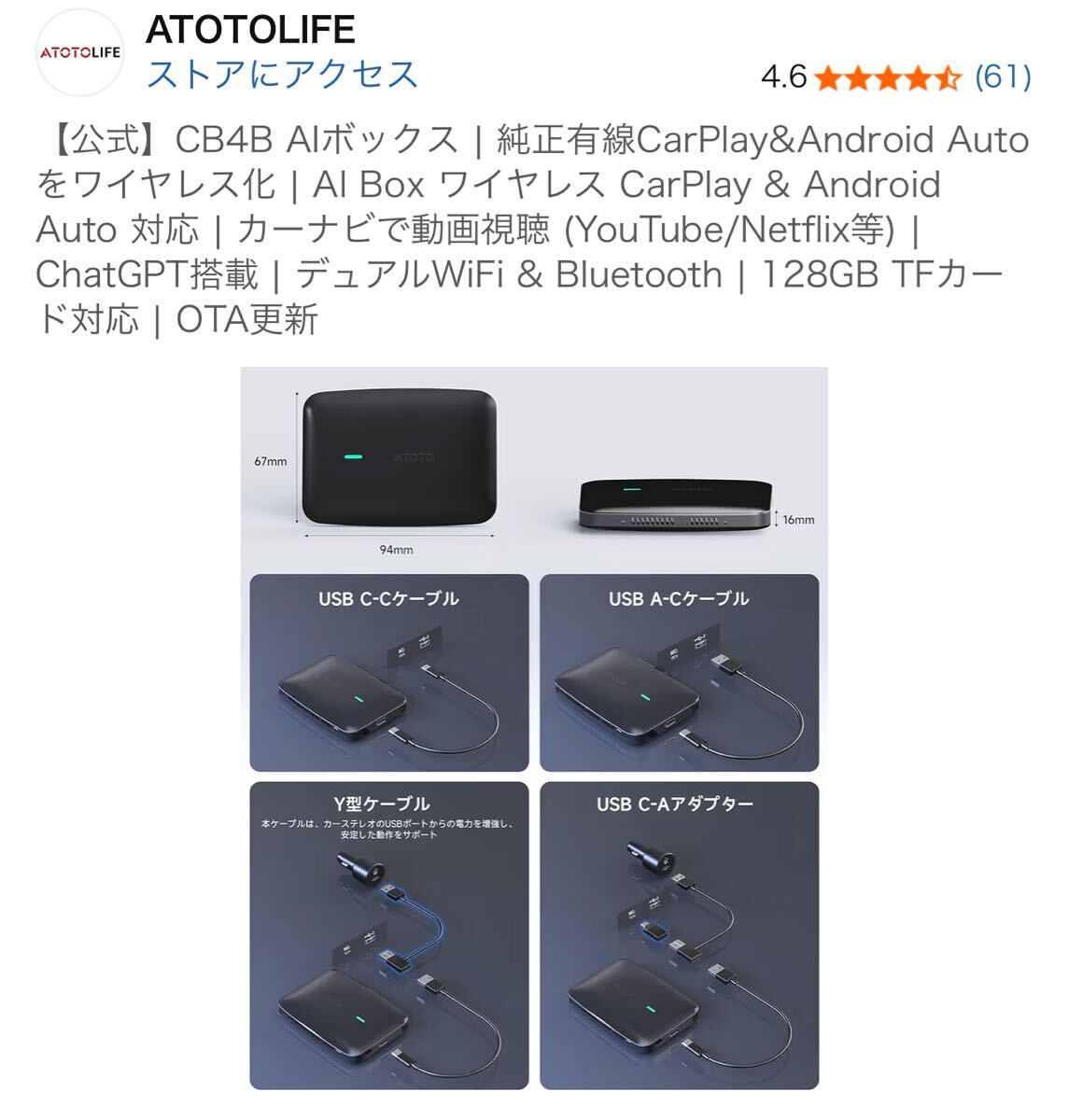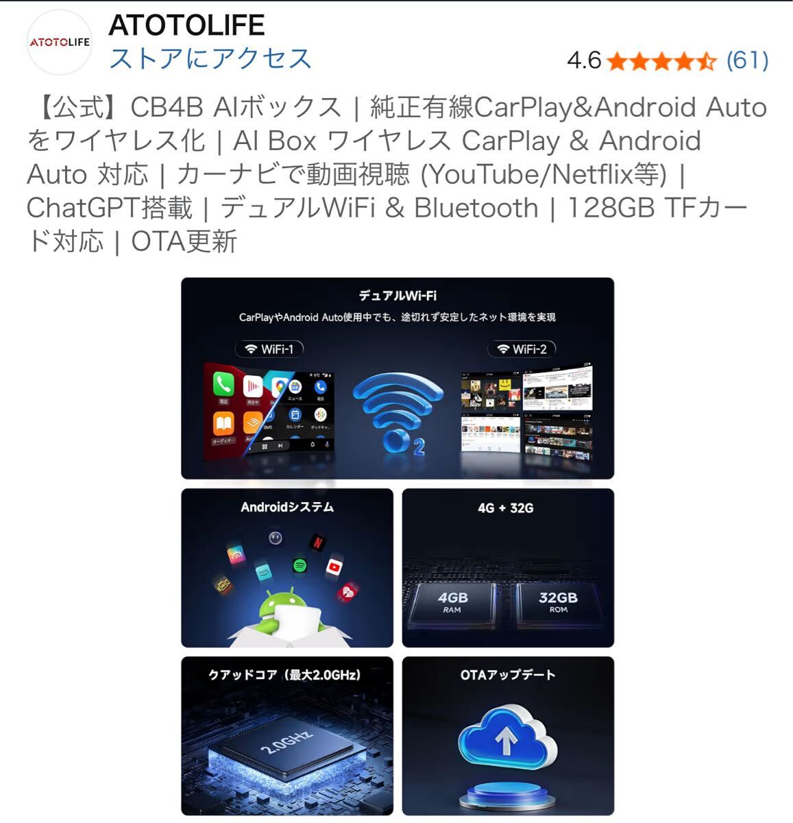 Product name: 新品 未使用 カープレイ ATOTO Carwave Smart Box CB4B CarPlay Android カーナビ