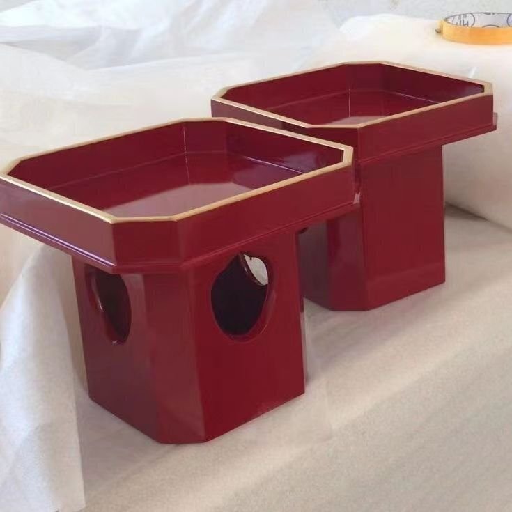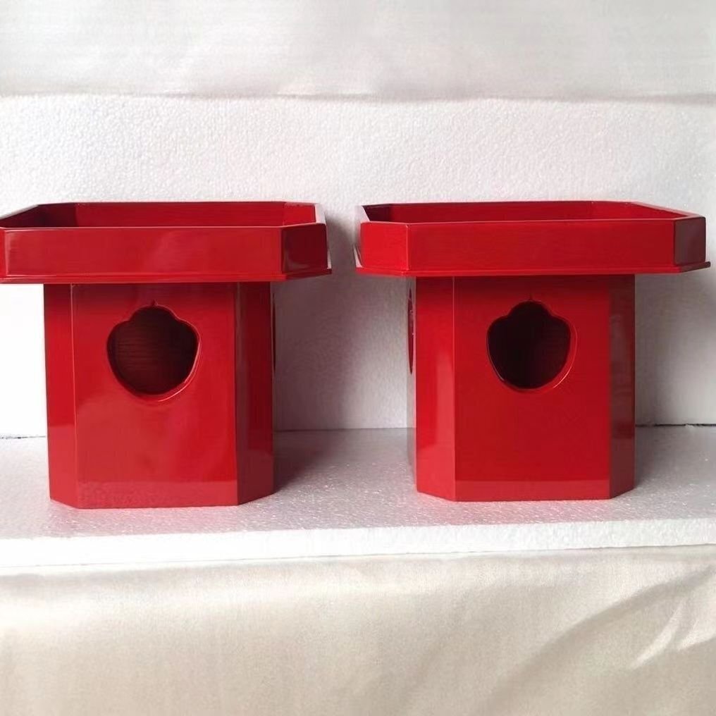 Product name: 仏教美術 木製 朱塗り 三宝 2個セット 幅さ24cm 仏具