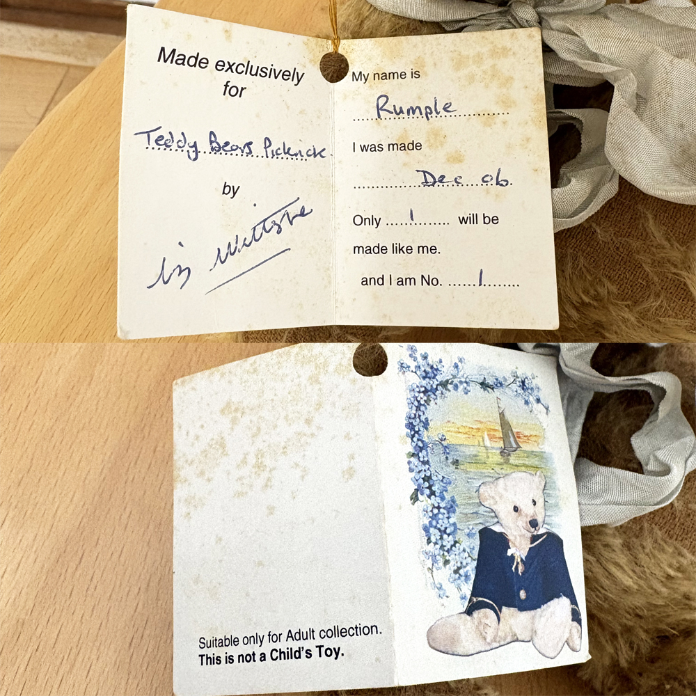 今はもうベアを作られていないリズさんのとてもレアな作品です。大きさは28㎝で、2006年に作られた1点ものです。