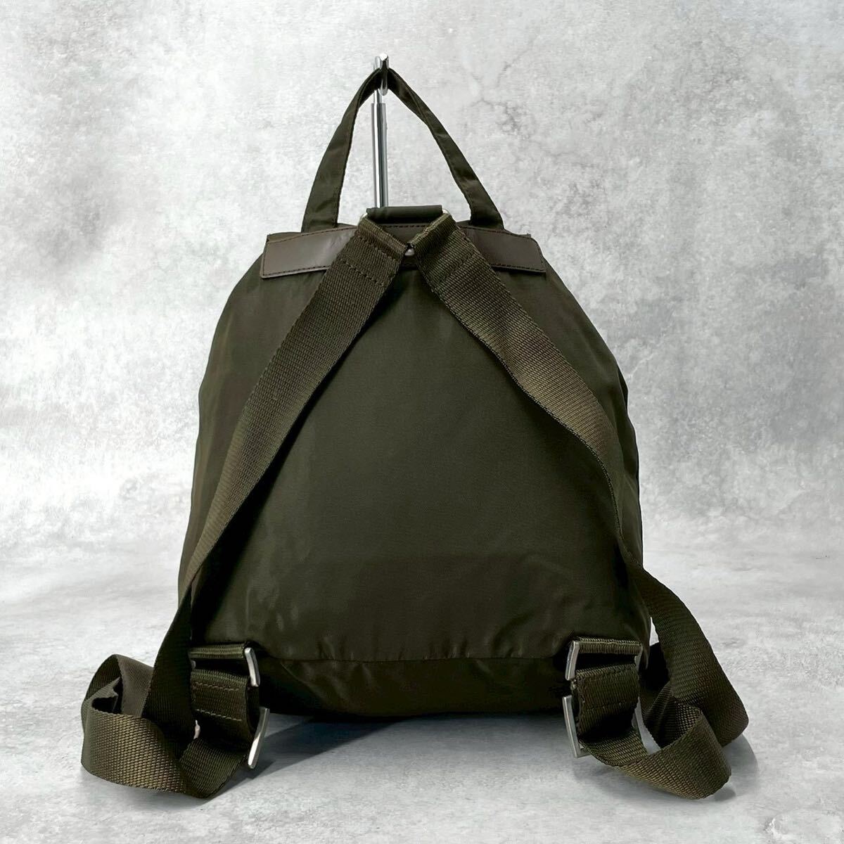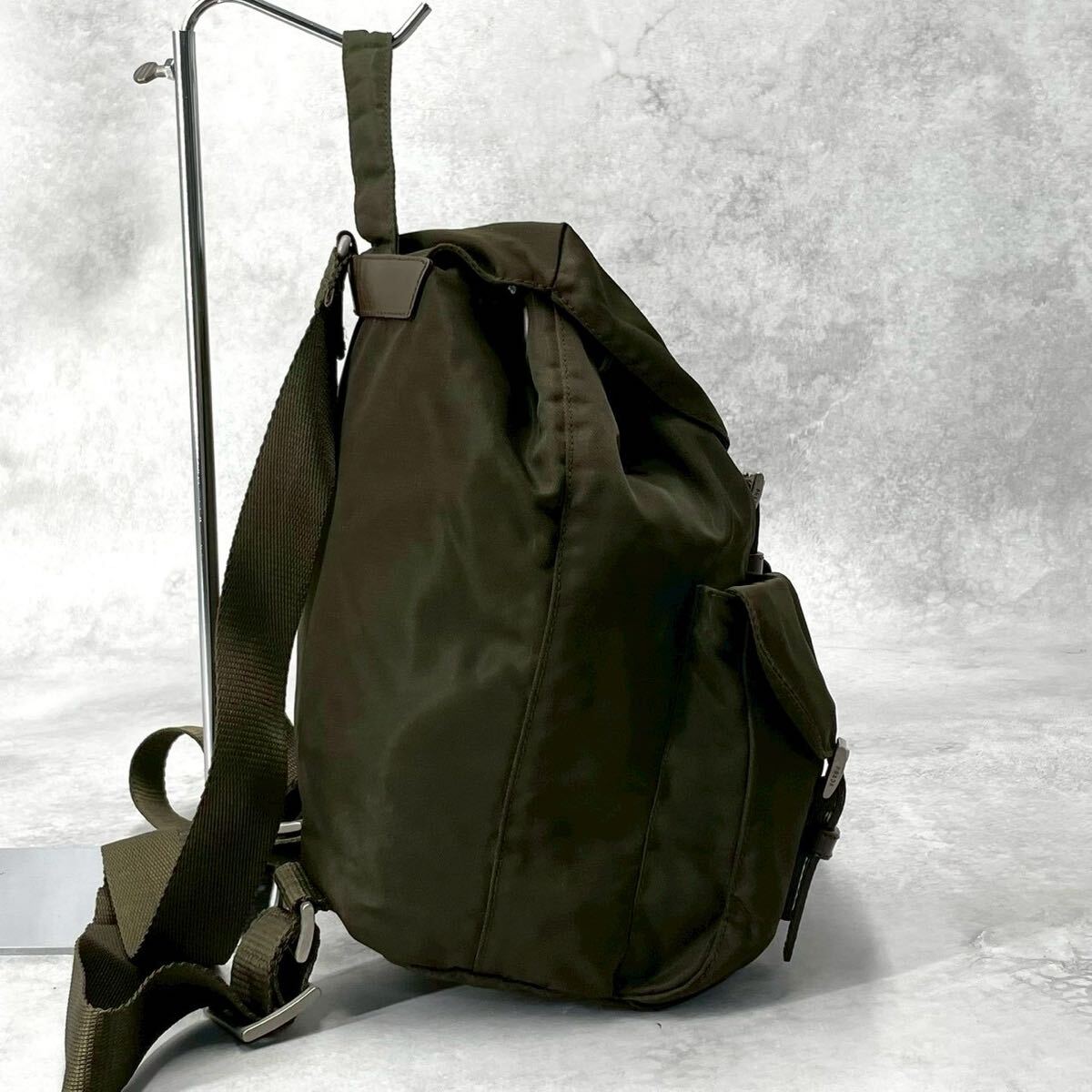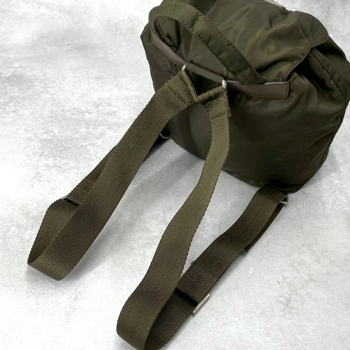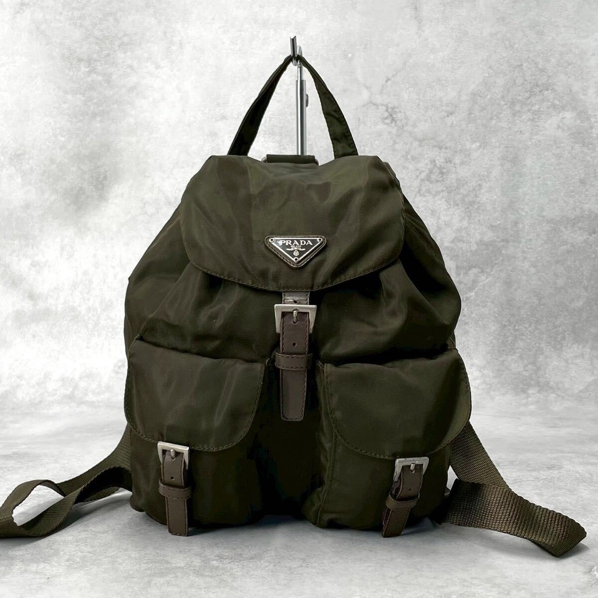 極美品◆PRADA プラダ リュック バックパック テスートナイロン リュックサック 三角プレート 三角ロゴ トライアングル カーキ