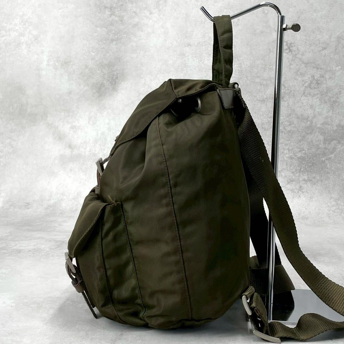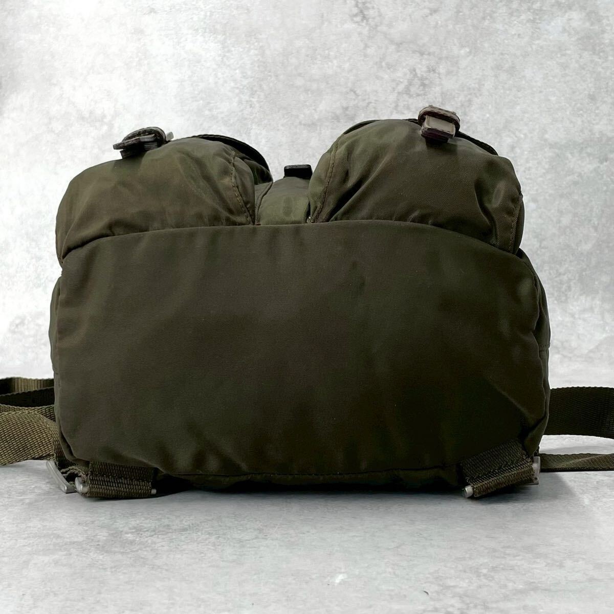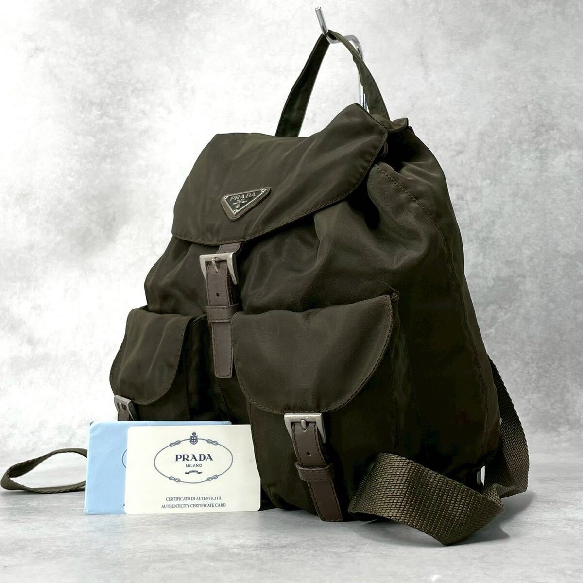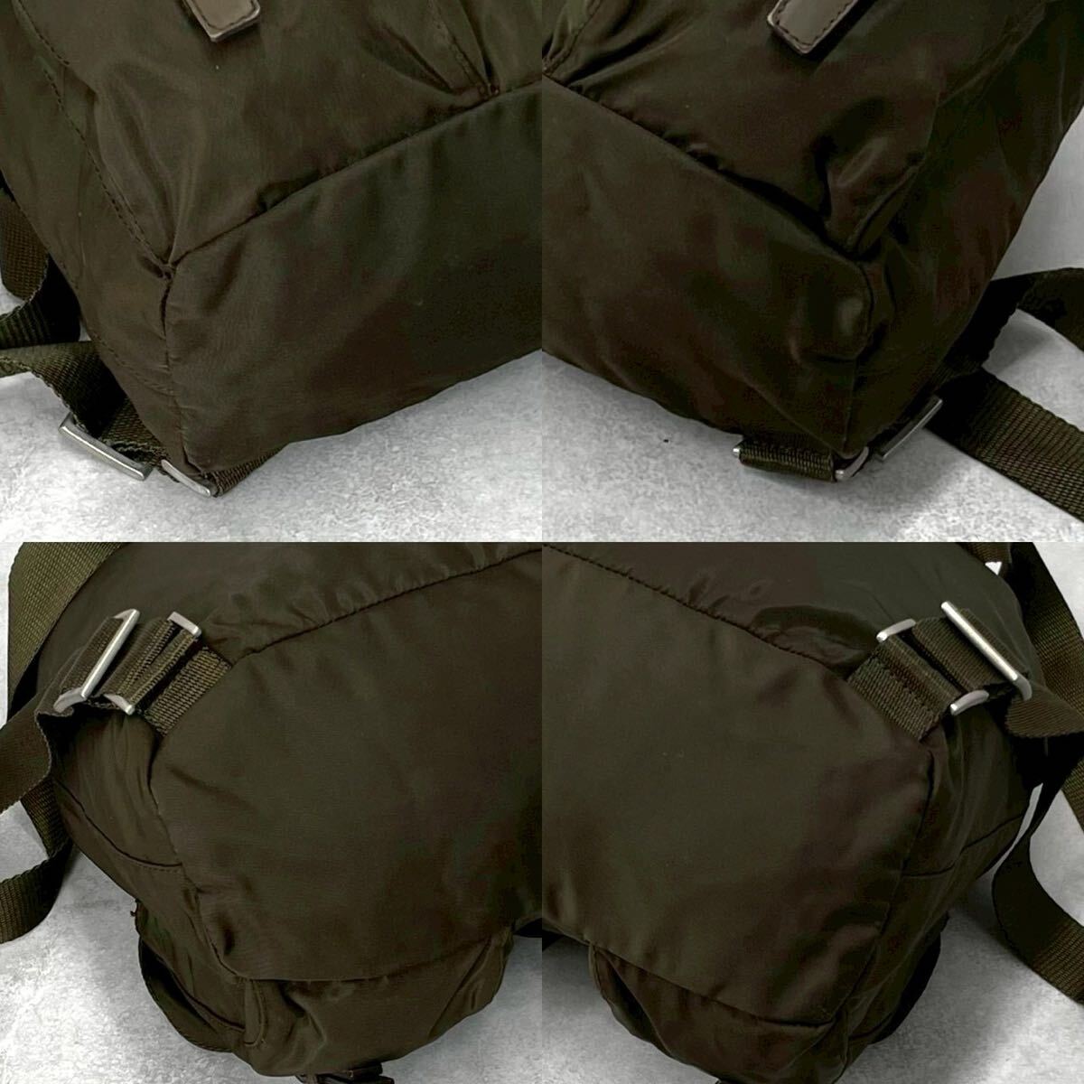 極美品◆PRADA プラダ リュック バックパック テスートナイロン リュックサック 三角プレート 三角ロゴ トライアングル カーキ