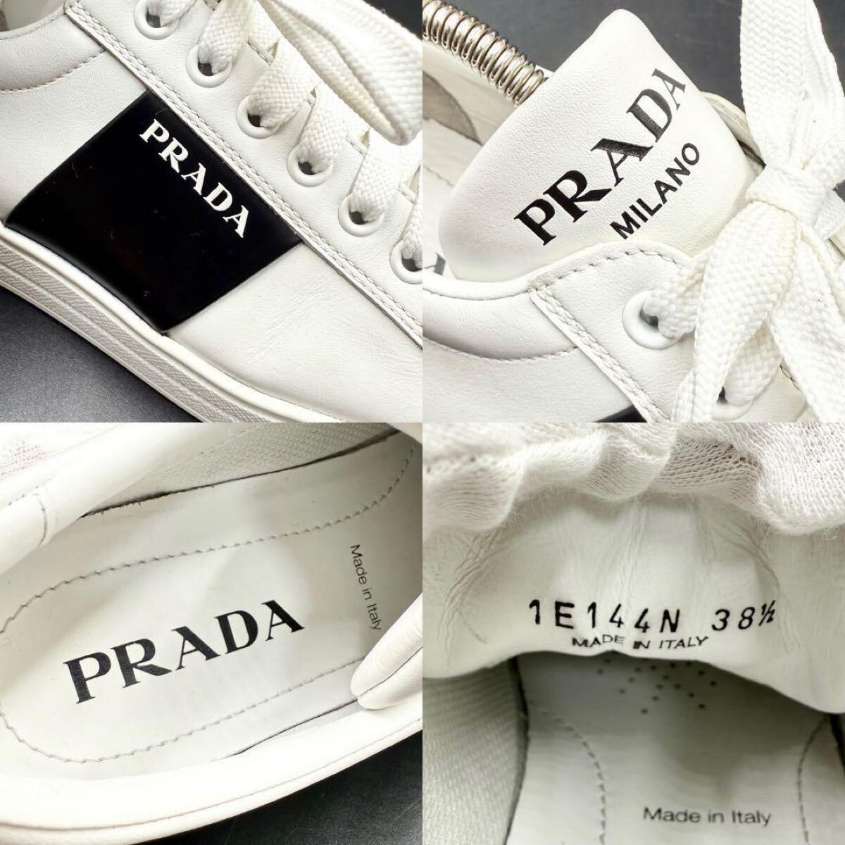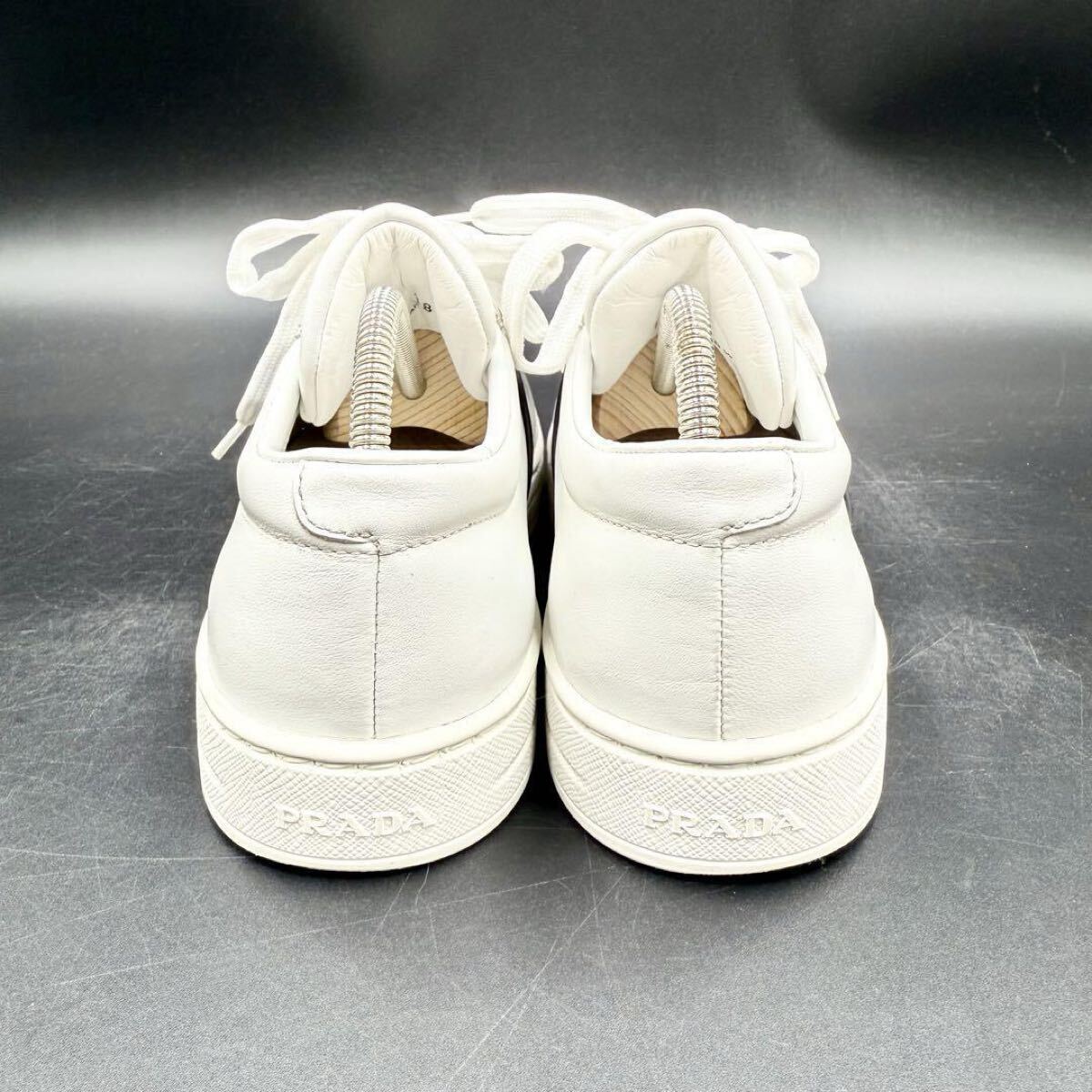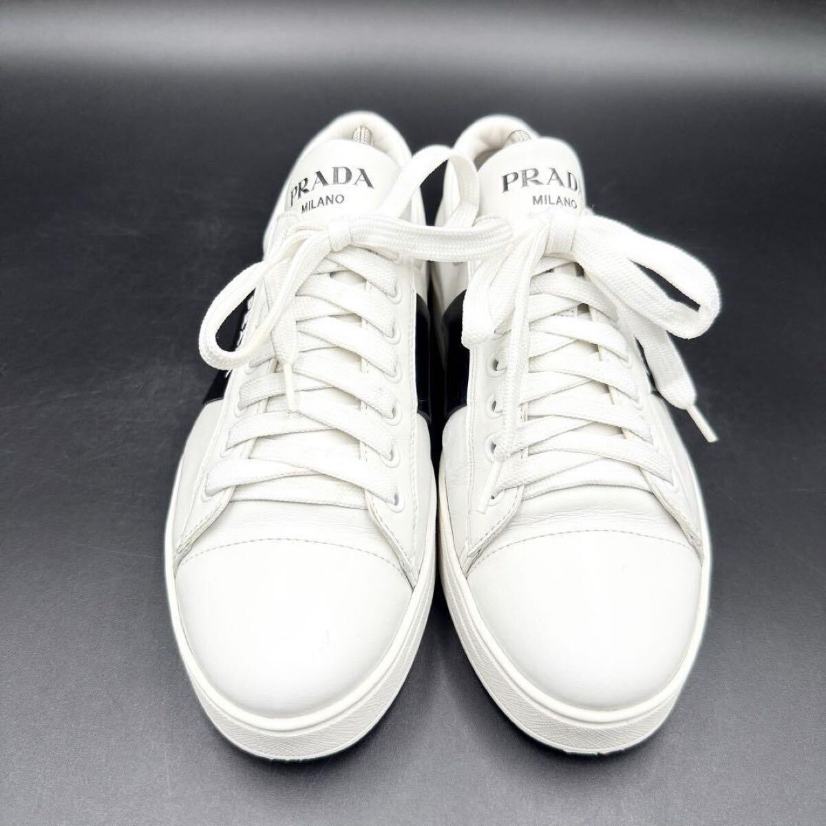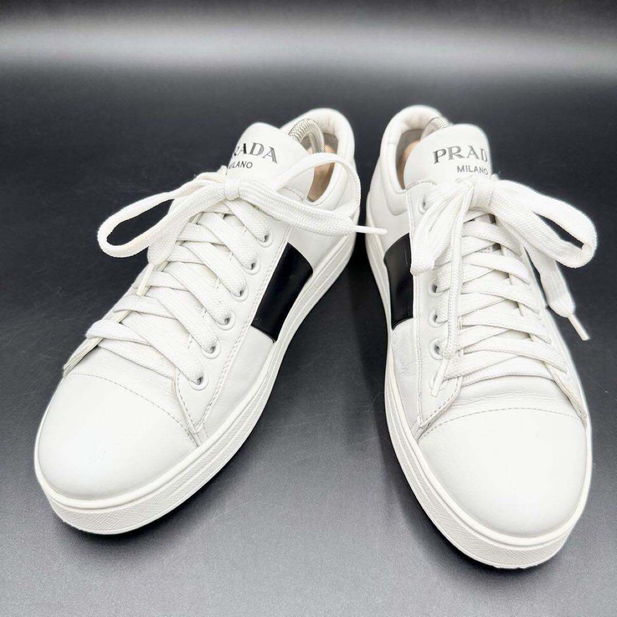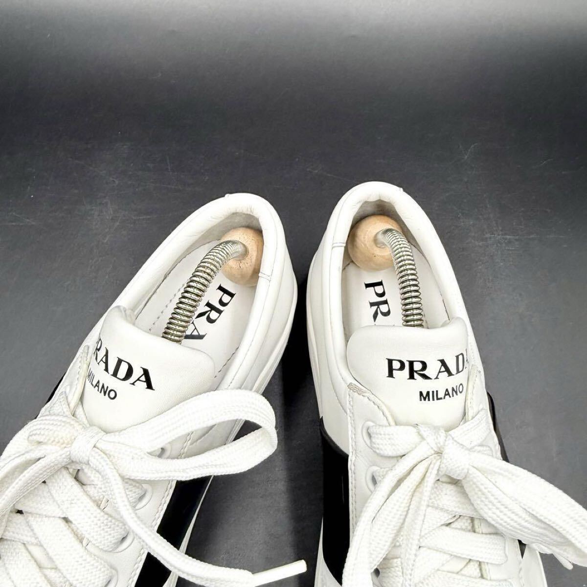 1円 【美品】 PRADA プラダ 【圧倒的存在感】 サイドロゴ サイドライン 厚底 レディース スニーカー 靴 シューズ ホワイト 白 23.5cm相当