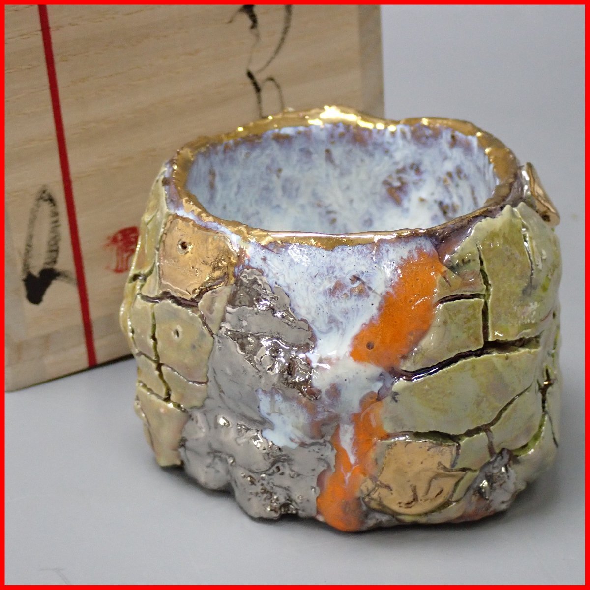 Product name: ☆未使用 市川透 備前 菊月華 ぐい呑 共箱・共布・栞付き/金彩/銀彩/陶磁器/酒器/酒盃/猪口/陶芸/焼き物/作家物/和食器&1747000626
