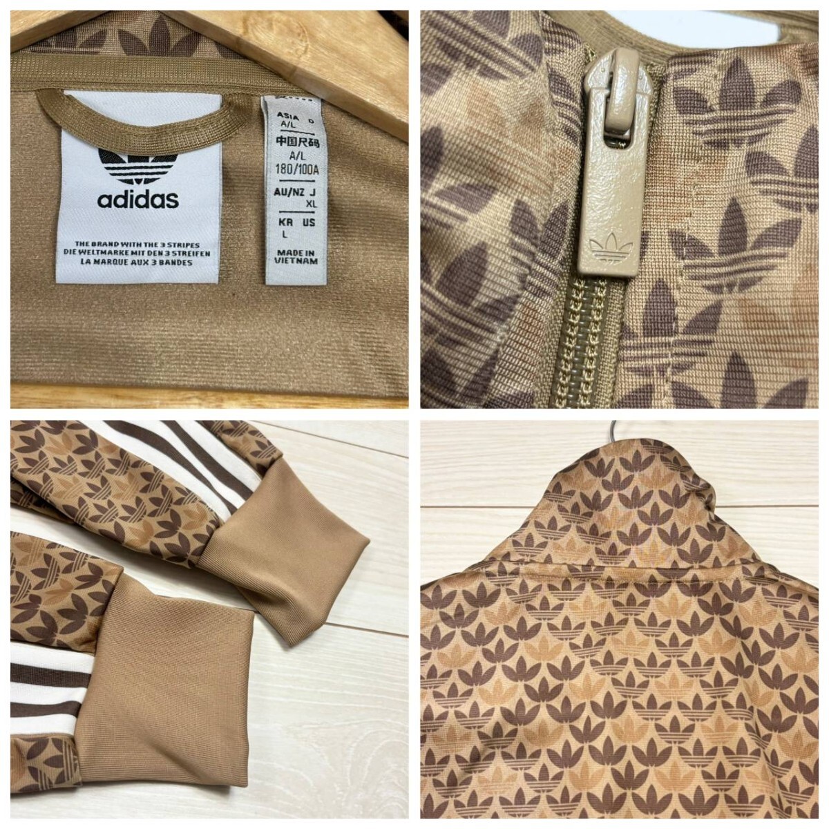 未使用級/XLサイズ●adidas Originals アディダス オリジナルス トラックジャケット パンツ トレフォイルロゴ 総柄 ブラウン セットアップ