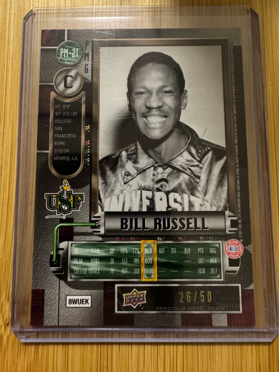 2011 FLEER RETRO PRECIOUS METAL GEM #PM-21 Bill Russell PRECIOUS METAL GEMS-BLUE /50