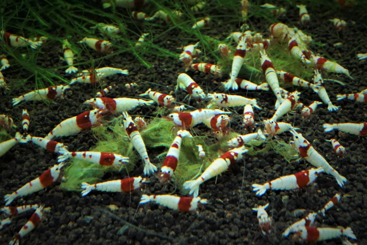 Product name: オリーブえび赤白ビー画像の水槽から色濃い赤脚若個体二の字~モスラ15匹+ブセファランドラ
