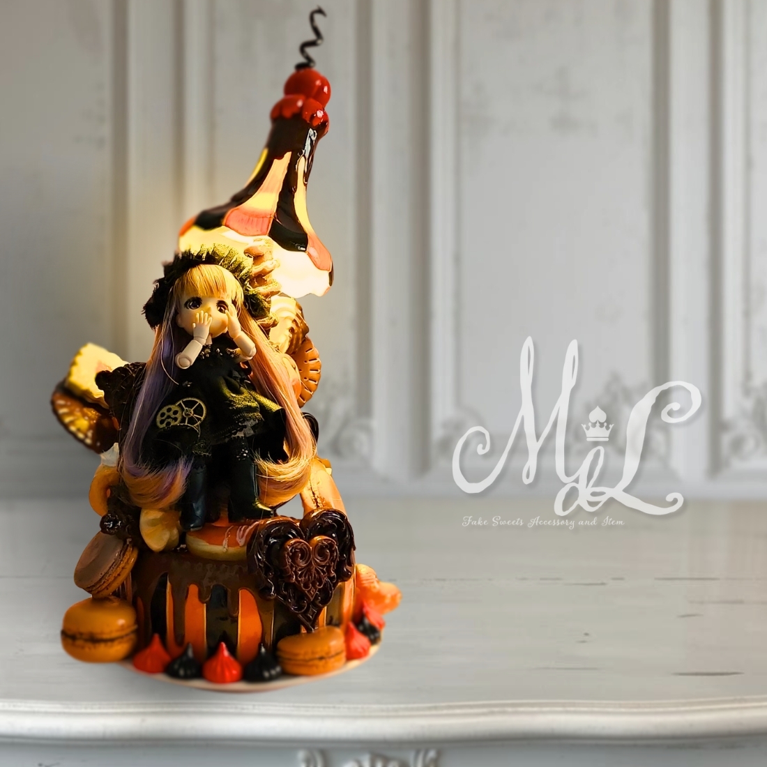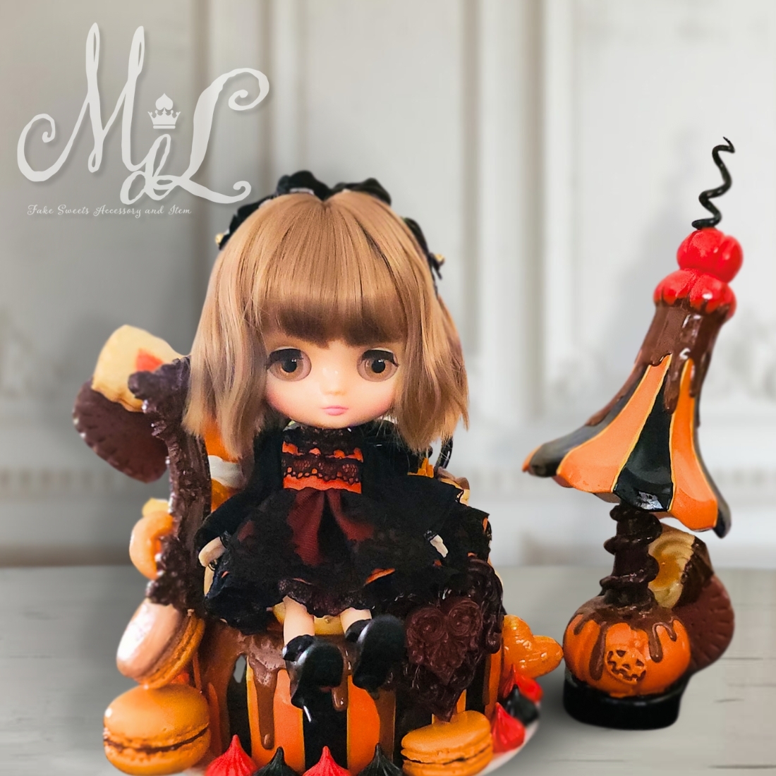 Product name: 【Maison de Luce】Halloweenの夜を優しく灯すランプとケーキのドールチェア/#240