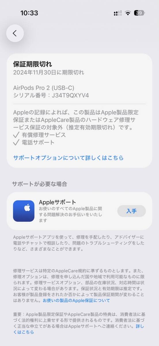 2023年11月購入、純正の箱入り、付属品一式そろっています。