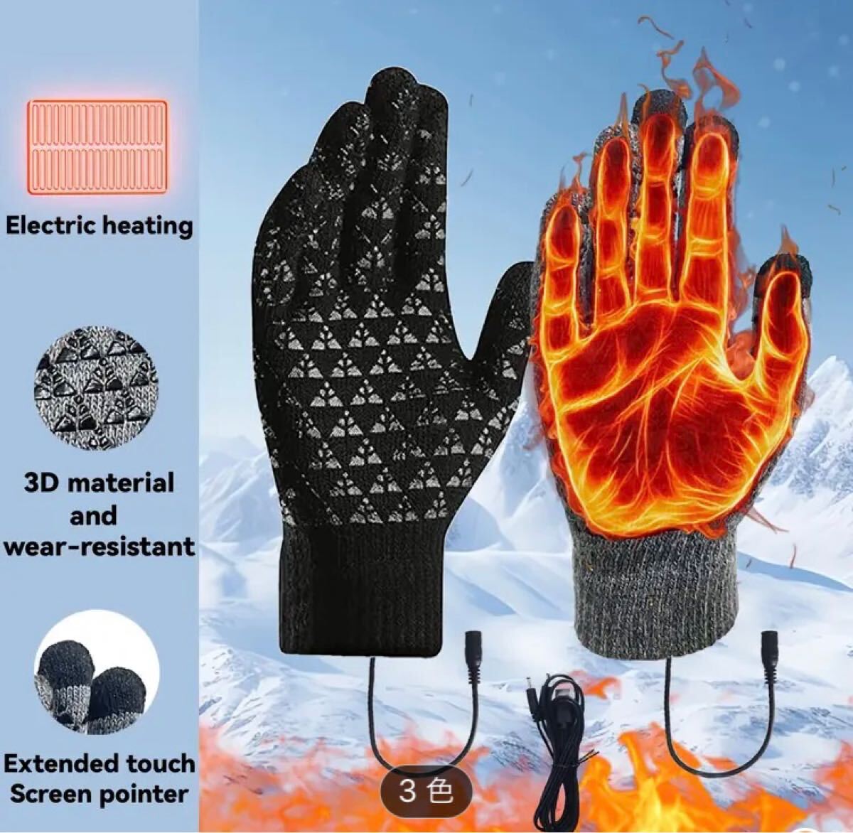 Product name: 電熱グローブ ヒーターグローブ 防寒グローブ USB給電 手袋 滑り止め メンズ レディース 防寒 保温 スキー スノボ 登山 電熱手袋 男女兼用