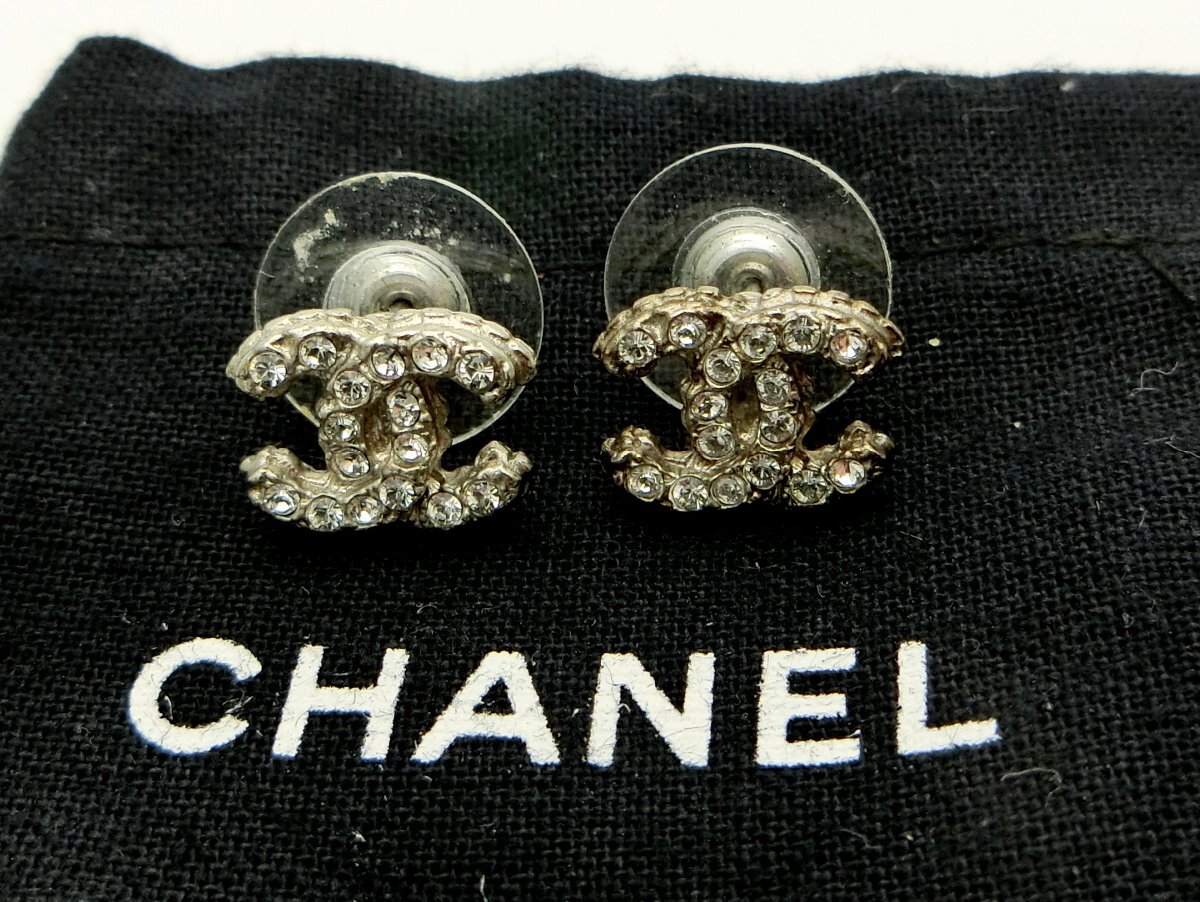 ピアス CHANEL シャネル A12A ココマーク ラインストーン シルバー 保存袋付き アクセサリー 装飾品 1円~ N0358
