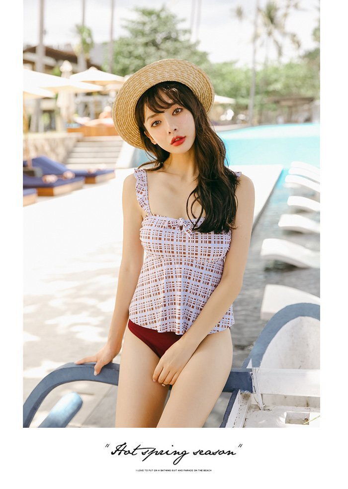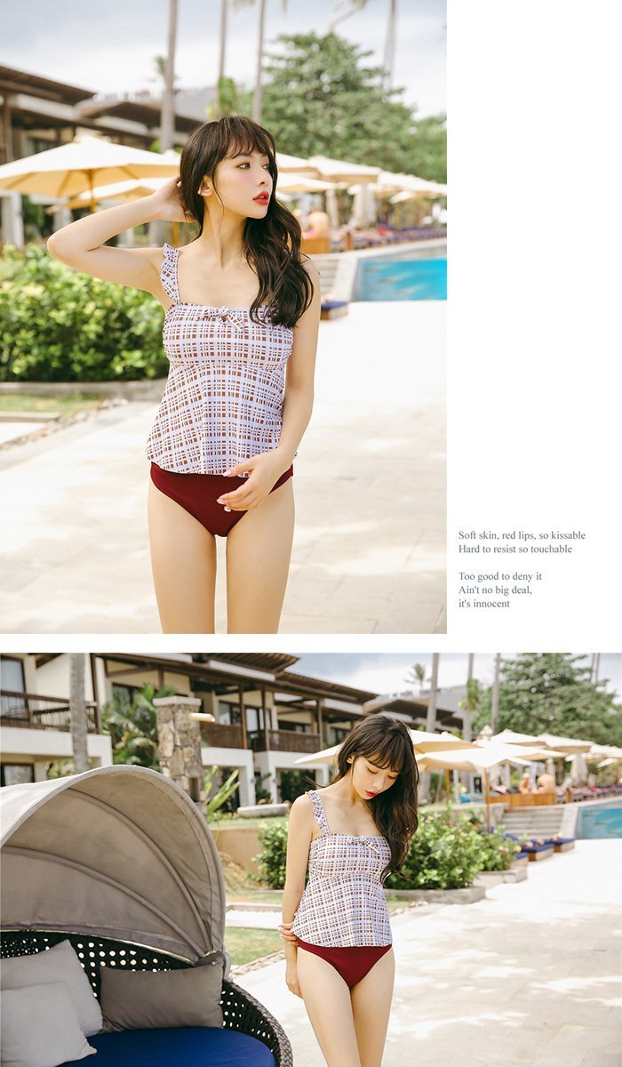Product name: 水着 体型カバー タンキニ レディース セット フレアトップ フリル 2点セット 安い ブラウンチェック XLサイズ(13号)