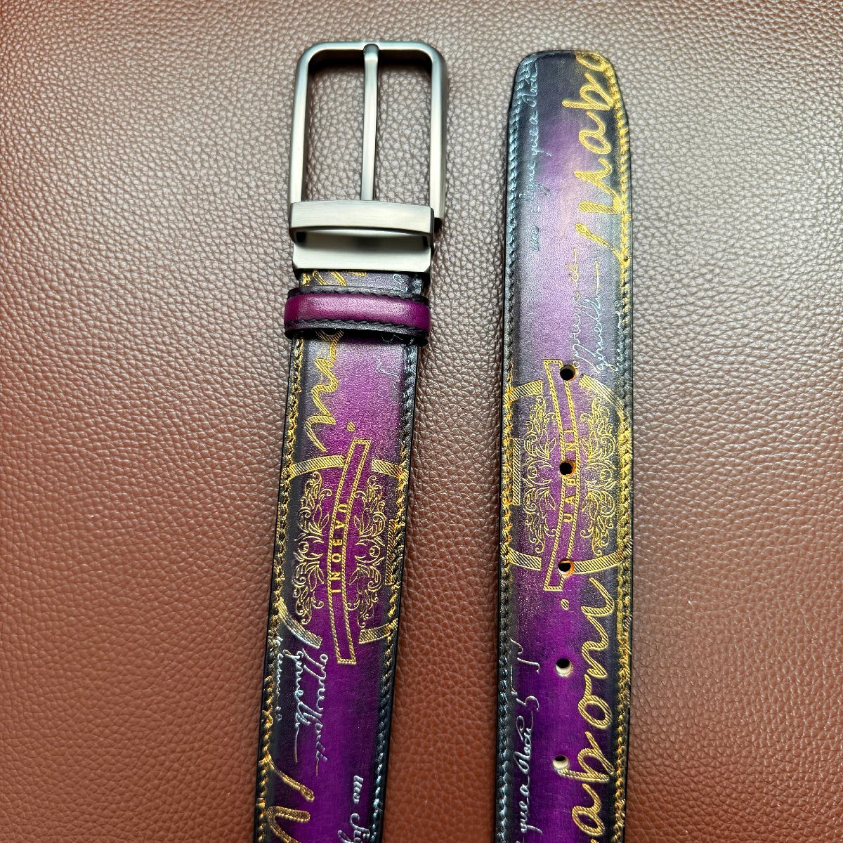 貴重品 EU製 定価9万◆UABONI*ユアボニ*幻のパティーヌ*ベルト◆本革 カーフスキン 手染 ゴールデン 調節可能 ビジネス 紳士 ベルルッティ