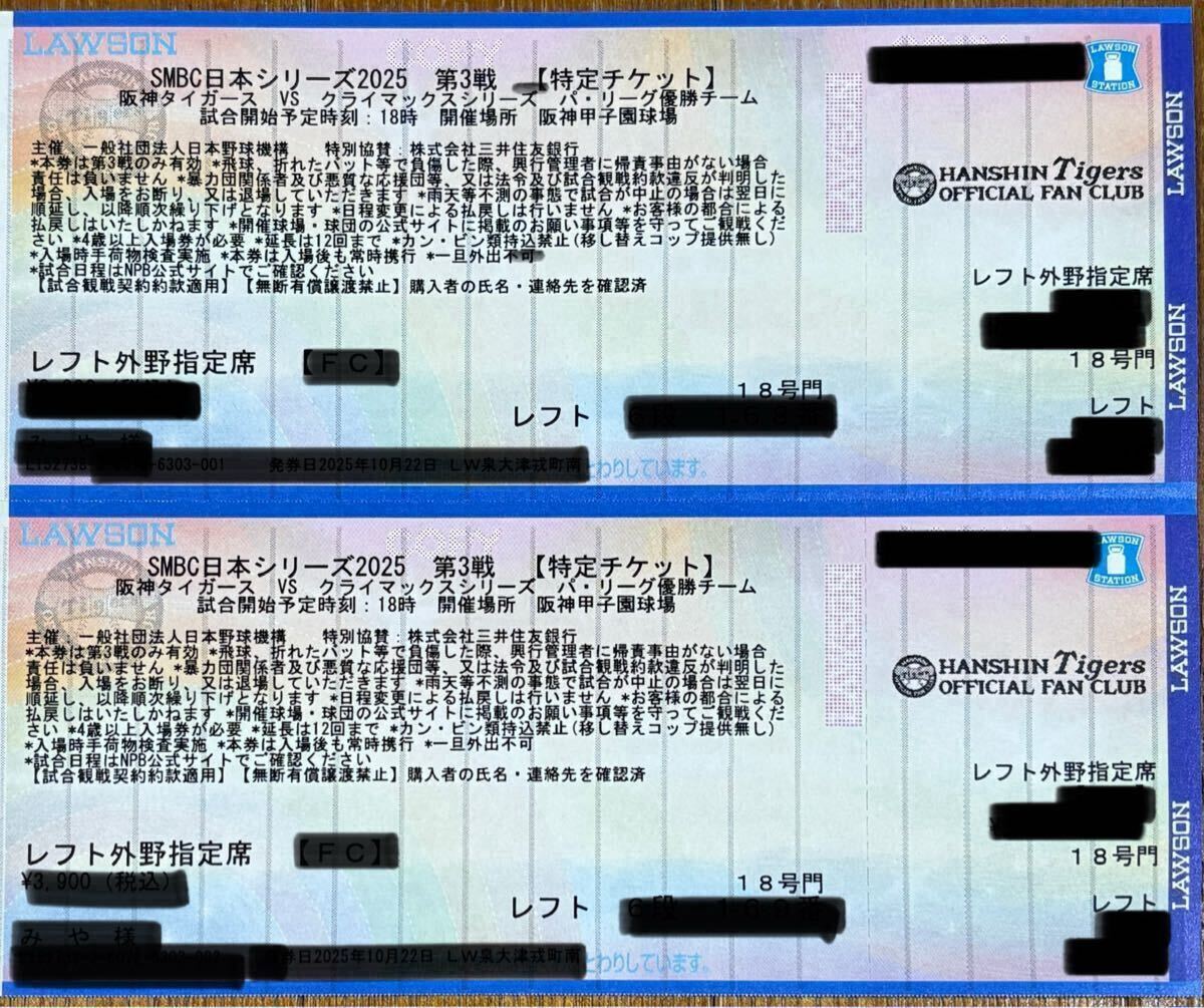 Product name: ☆通路近☆SMBC日本シリーズ2025 第3戦  阪神タイガースvsソフトバンク 阪神甲子園球場 レフト外野 大人2枚ペアセット 10/28予定