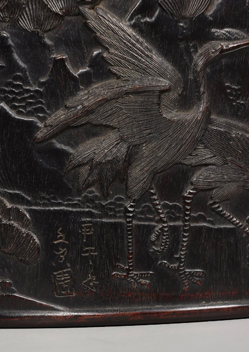 Product name: 【安】清時代 珍木紫檀 松鶴延年紋筆筒 細密毛彫 書道具 文房具 中国古美術 時代物 古董品 223