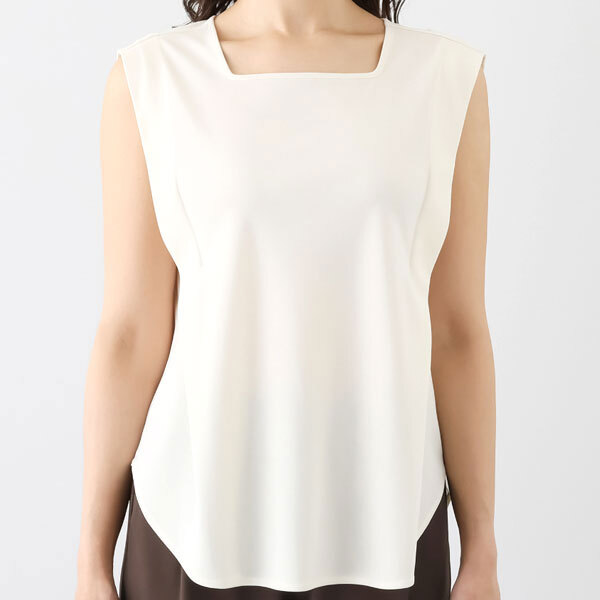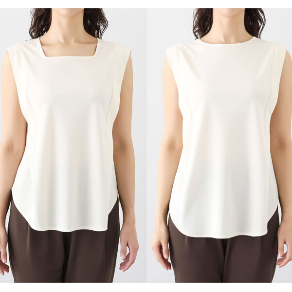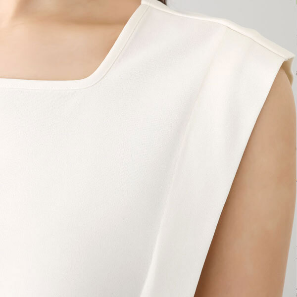 ネックデザインはスクエアとボートネック、前後どちらでも着用できる仕様です。