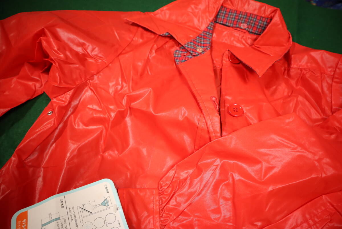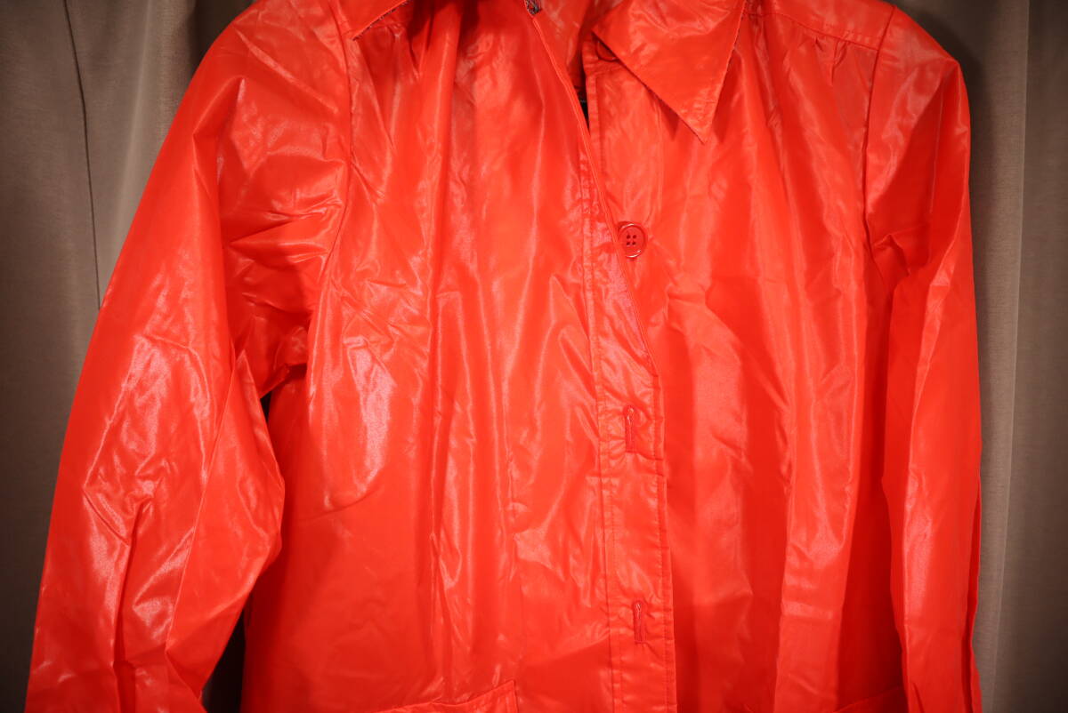 ☆レトロ 女子、婦人用 レッド 光沢ナイロンレインコート 107☆