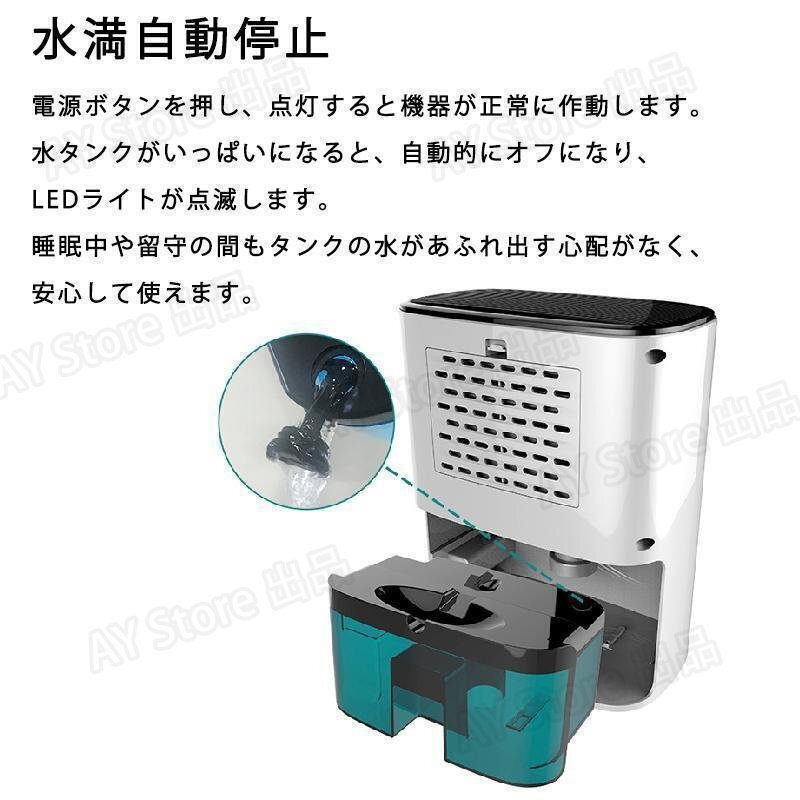 水タンクがいっぱいになると自動的に運転を停止し、赤いランプの点灯でお知らせします。透明な水タンクなので除湿量が一目で分かります、お出かけをしている時や睡眠時にも安心してご使用いただけます。