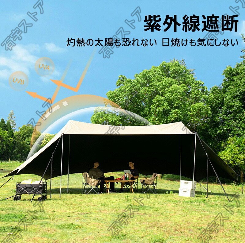 大型タープ 日陰面積最大60平米 ブラックコーティング コンパクト収納 日焼け防止 収納バッグ付き 防水 耐摩耗性 アウトドア shw192