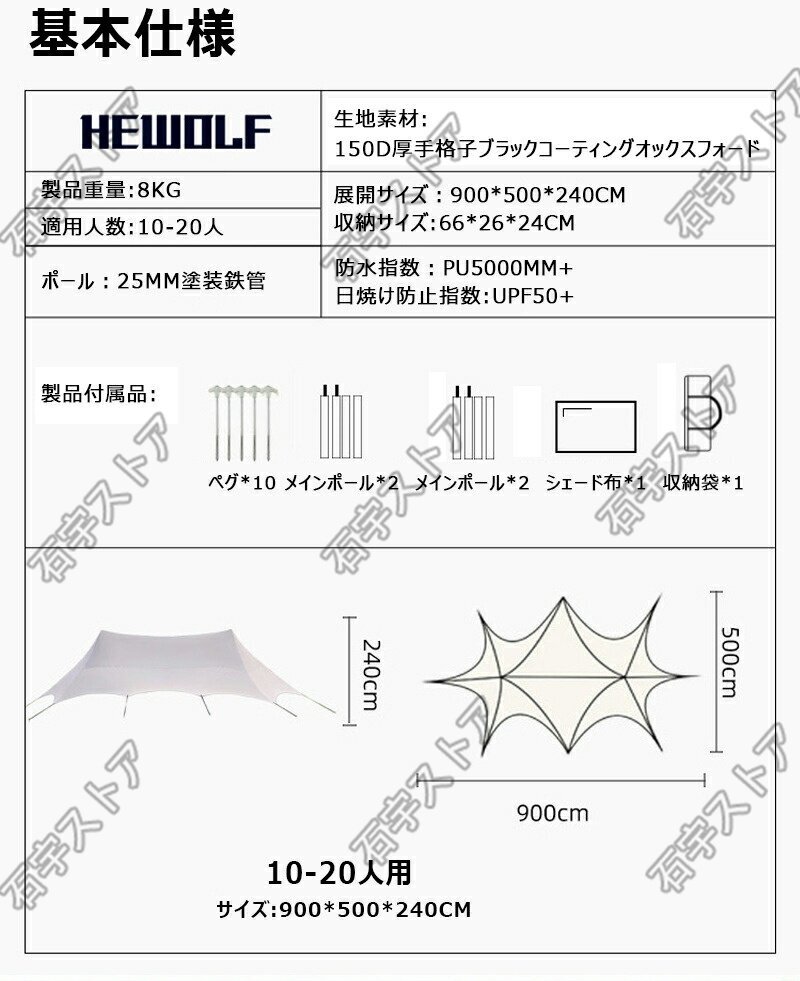Product name: 大型タープ 日陰面積最大60平米 ブラックコーティング コンパクト収納 日焼け防止 収納バッグ付き 防水 耐摩耗性 アウトドア shw192