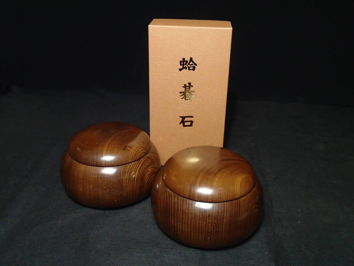 ◇蛤碁石33号『雪印』美麗品!! 元箱付き/ 特大碁笥セット◇I3