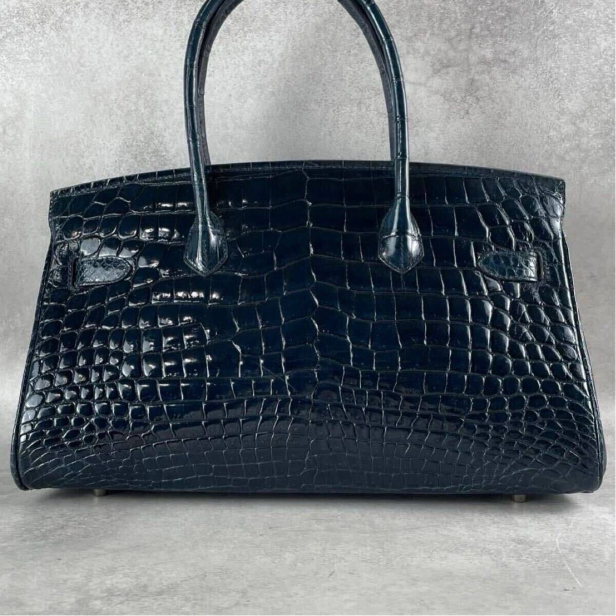 最高峰!!! 極美品!!! リアルクロコダイル シャイニング加工 ハンドバッグ トートバッグ ブルー 青 フォーマル 鍵 南京錠 鰐革 ワニ