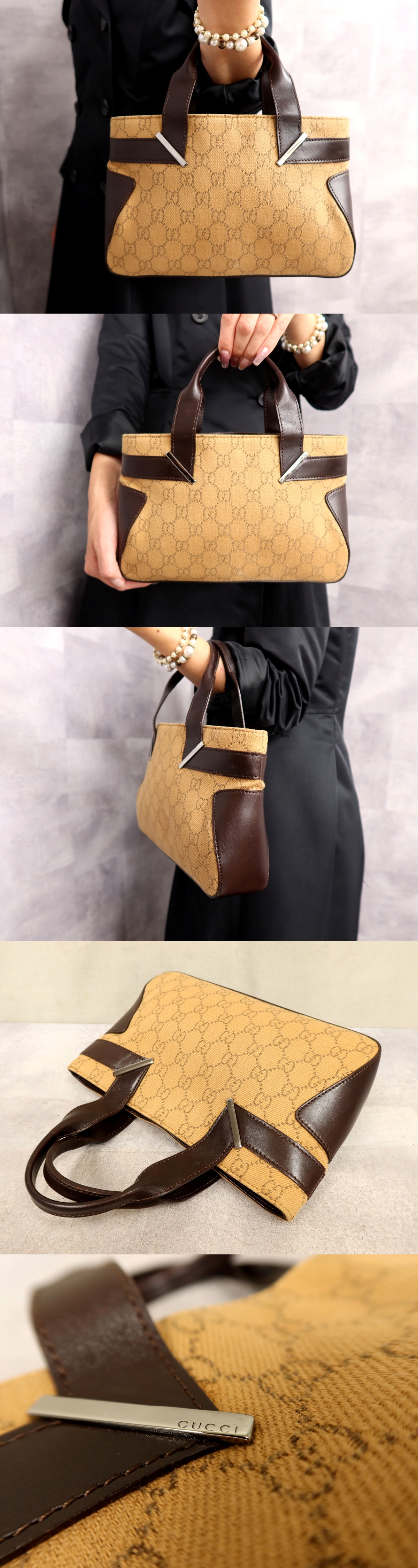 Product name: ●超美品●GUCCI グッチ●GGデニム カーフ レザー 本革●ハンド バッグ●ブラウン ベージュ●SV金具●腕掛け●イタリア製●かばん●Js61892