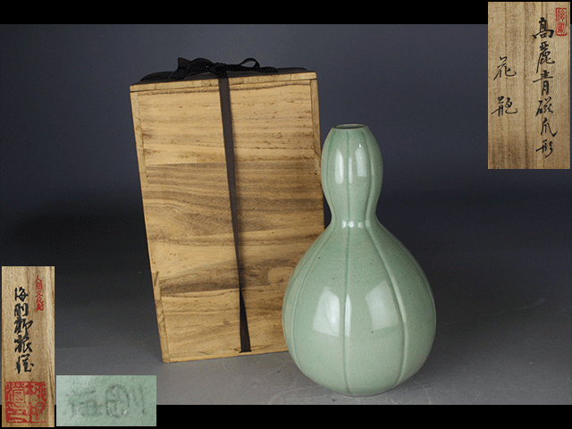 Product name: 【西】J284 韓国人間文化財 柳 海剛 柳 根瀅 高麗青磁 花瓶 共箱