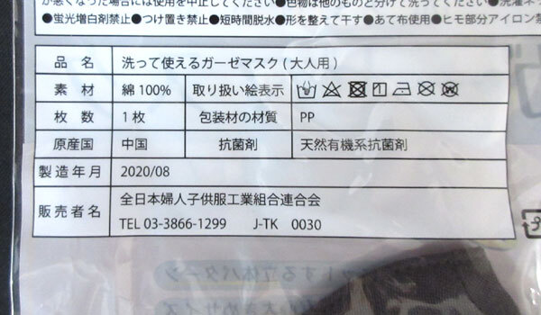 色柄おまかせ 大人用 ガーゼマスク 100点