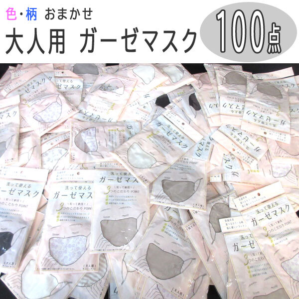 送料300円(税込)■bv816■色柄おまかせ 大人用 ガーゼマスク 100点【シンオク】