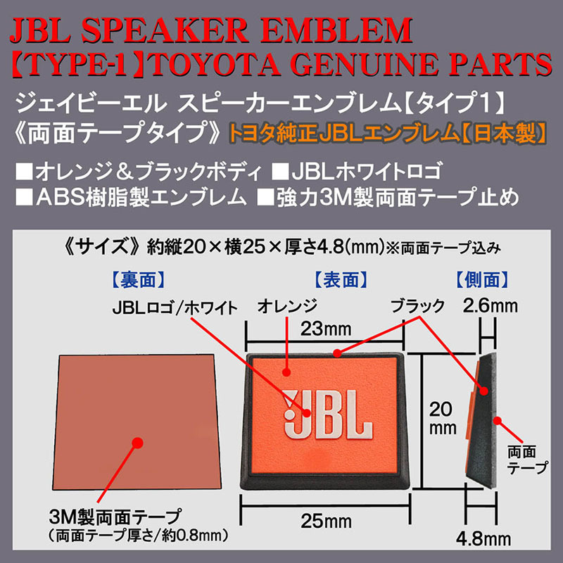 ※本品は、トヨタ純正パーツのJBLスピーカー用エンブレムプレートです。この純正パーツを様々な車種・スピーカー等に取付けられるよう両面テープ取付け仕様に加工してます。