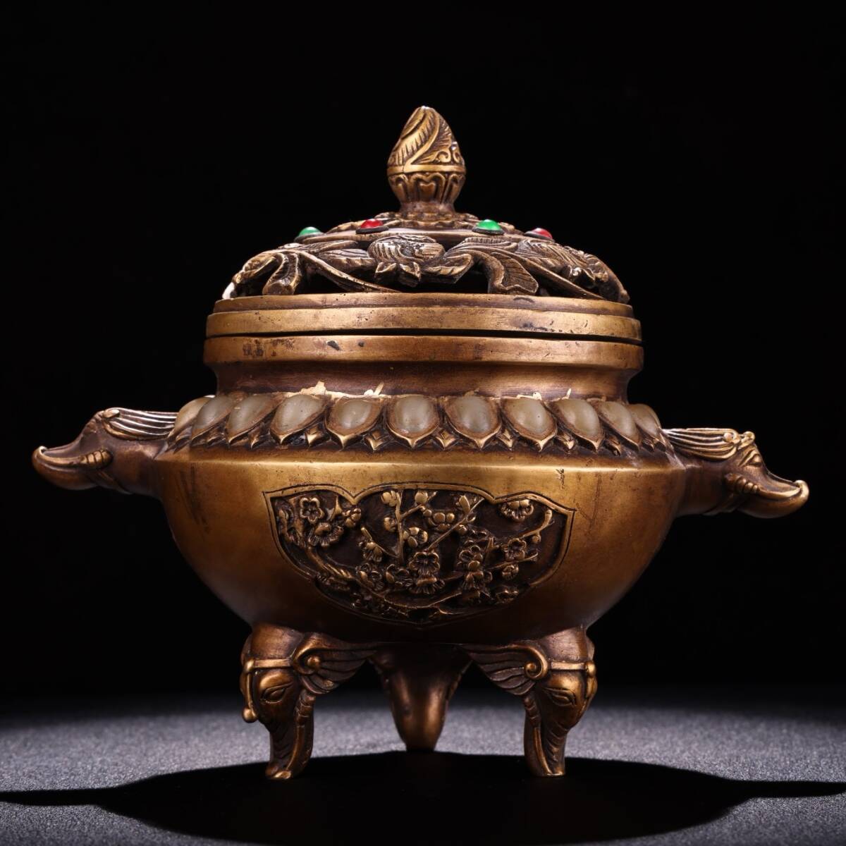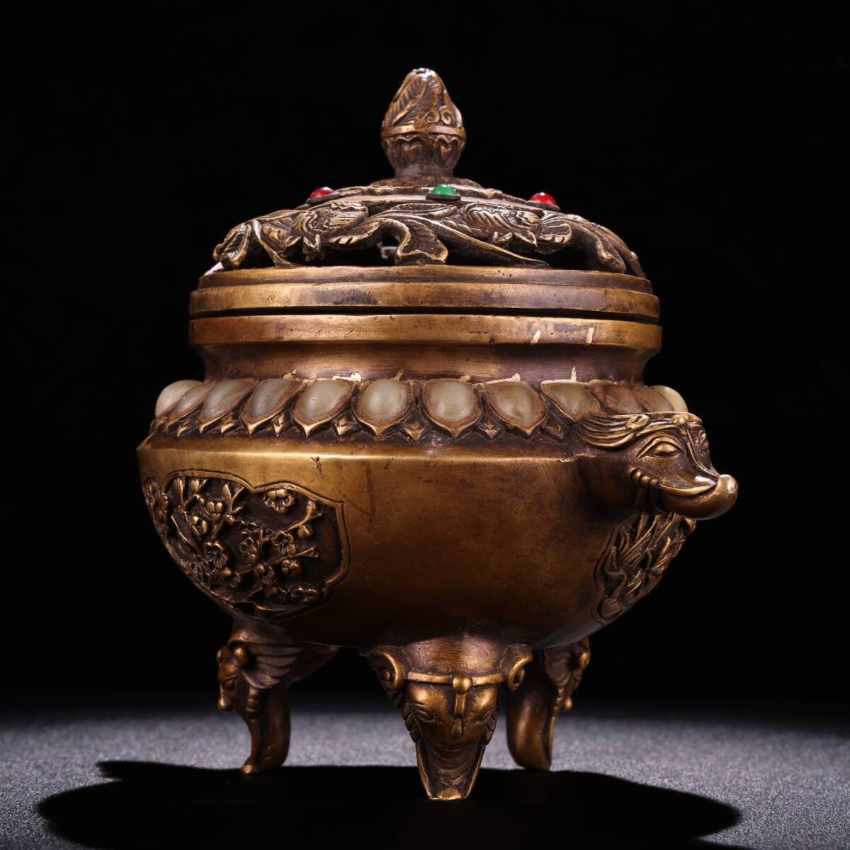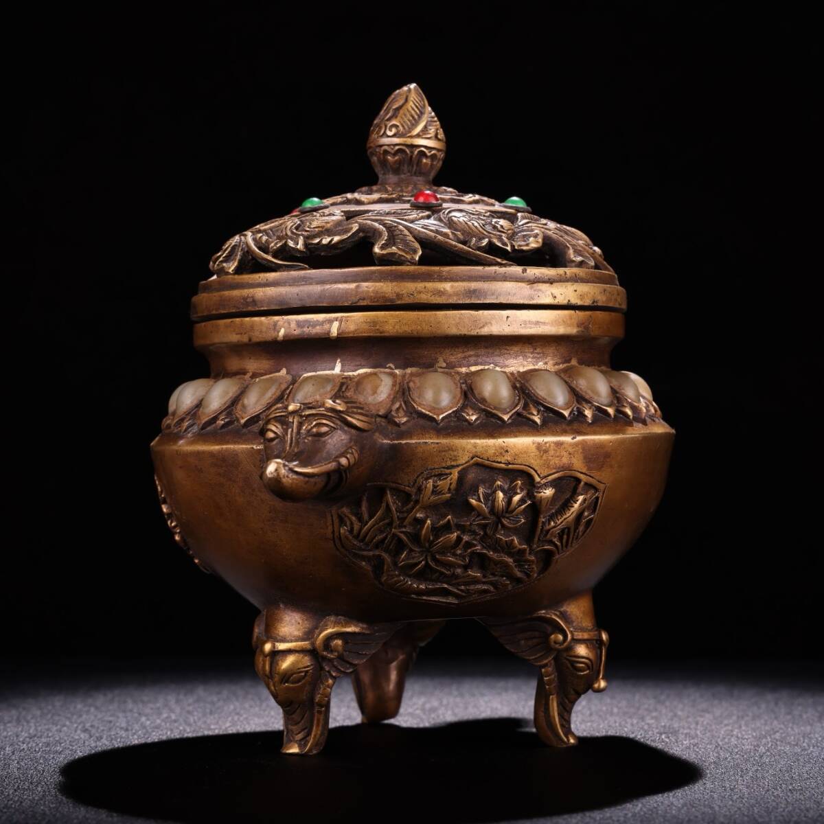 Product name: N① 香炉 ①N 希少珍品唐物 貴重 銅製 花卉紋 象炉 銅炉 熏香炉 仏具 茶道