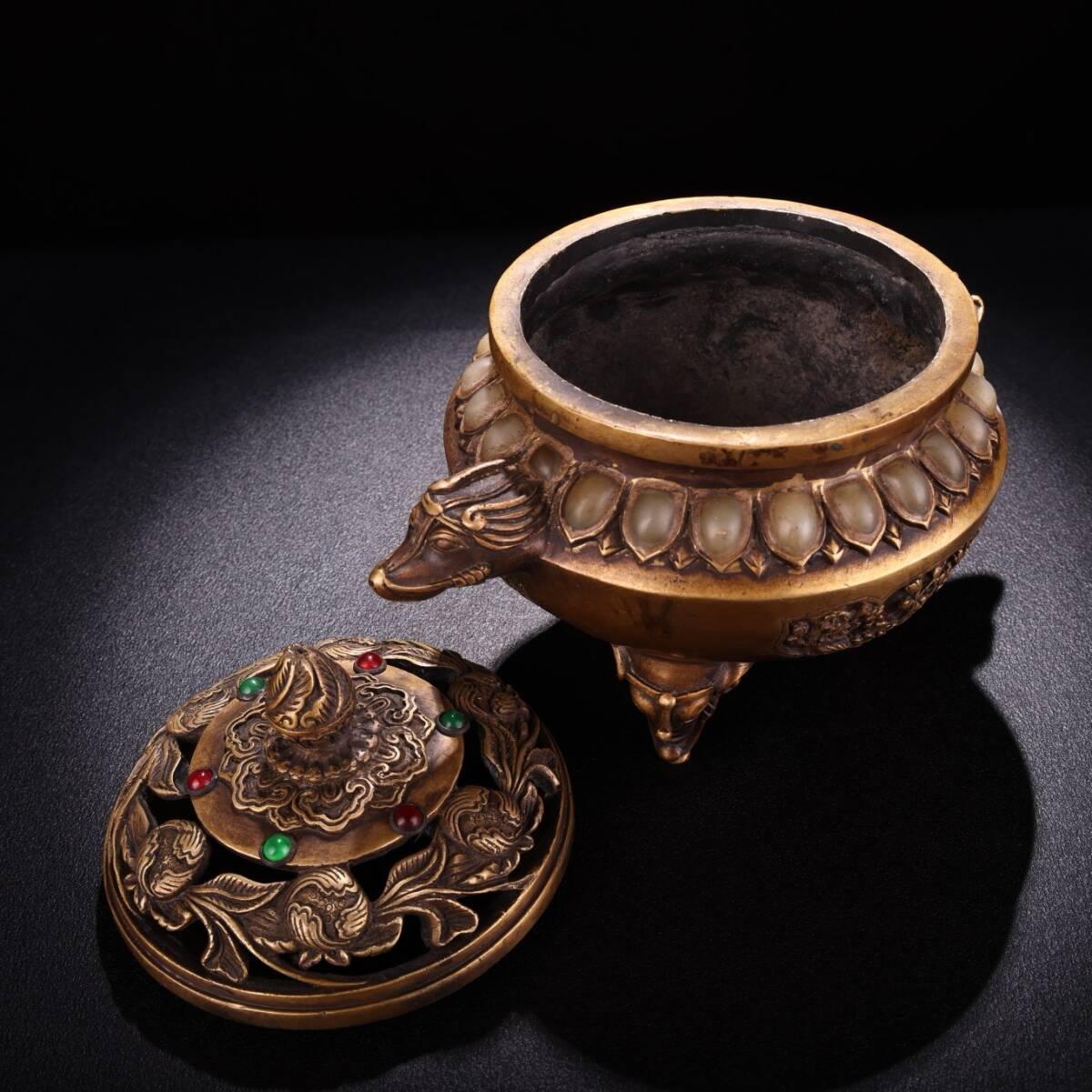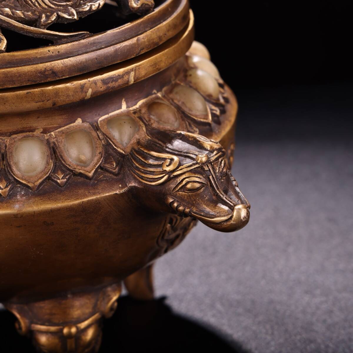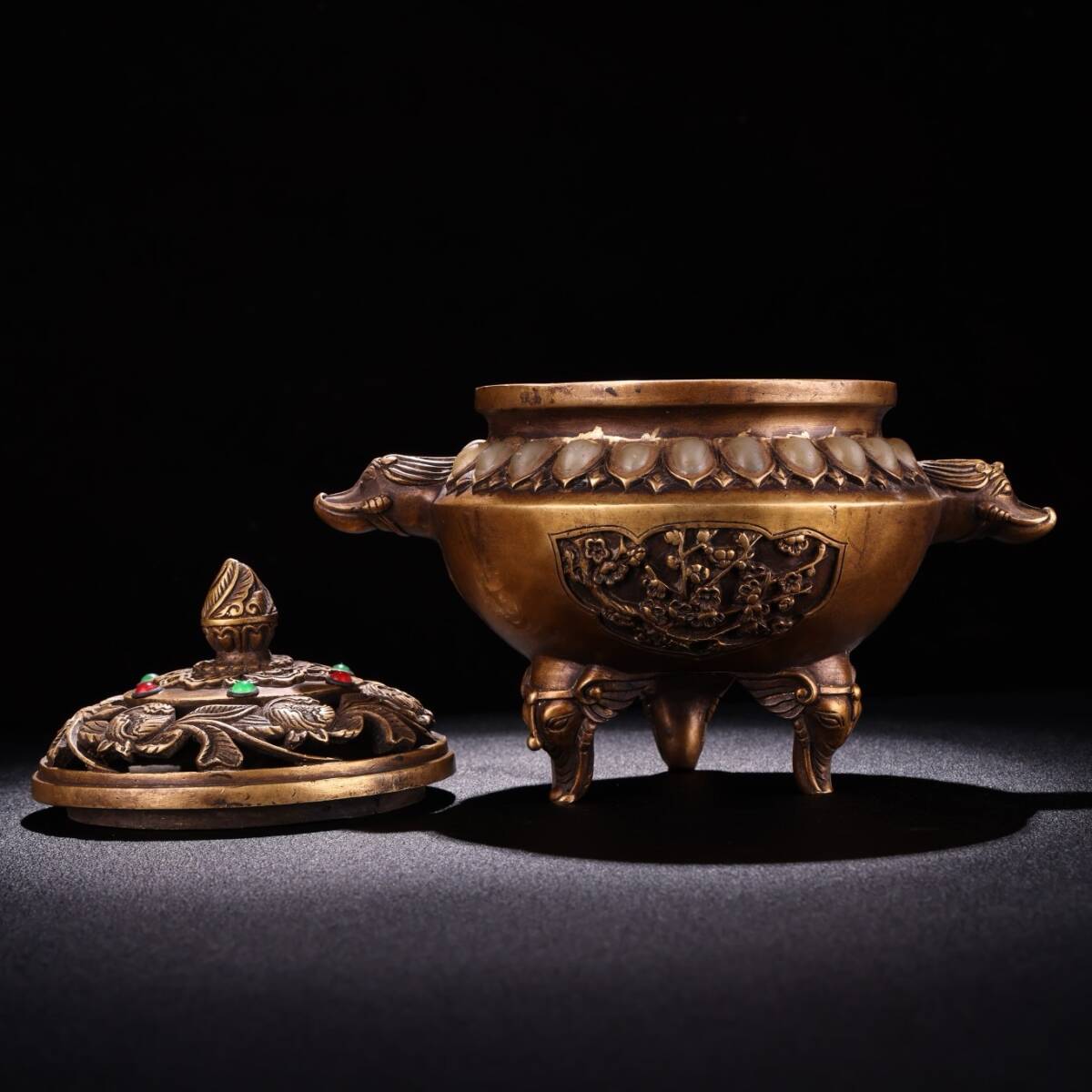Product name: N① 香炉 ①N 希少珍品唐物 貴重 銅製 花卉紋 象炉 銅炉 熏香炉 仏具 茶道