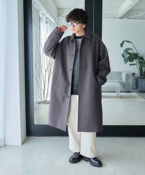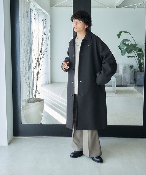 キーワード:ステンカラーコート コート メンズ ロング丈 無地 秋 冬