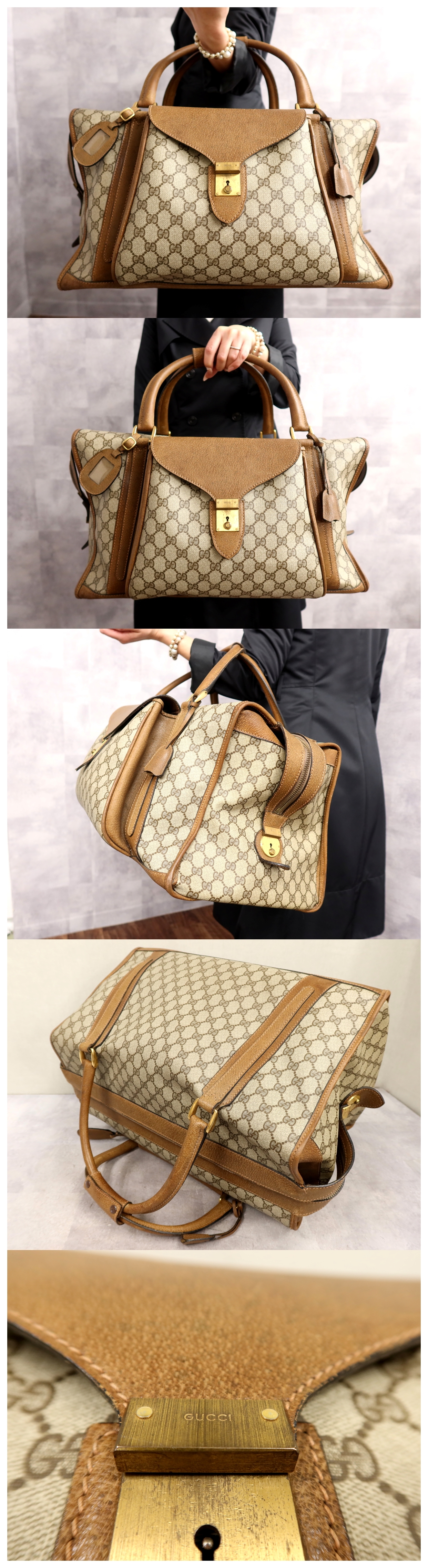 Store ●超美品●GUCCI オールド グッチ●GGスプリーム●PVC カーフ レザー●ボストン バッグ●ブラウン ベージュ●G金具●ヴィンテージ●Js65342