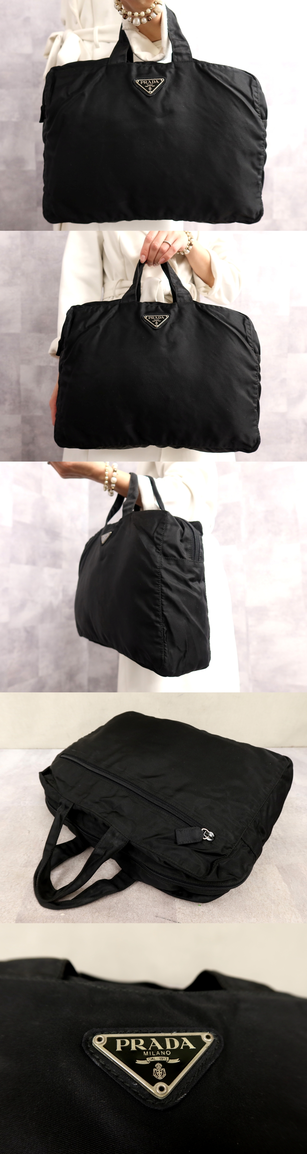 Product name: ●超美品●PRADA プラダ●三角ロゴプレート●ポコノ ナイロン●トート ハンド バッグ●黒●シルバー金具●イタリア製●腕掛け●A4●Js65386