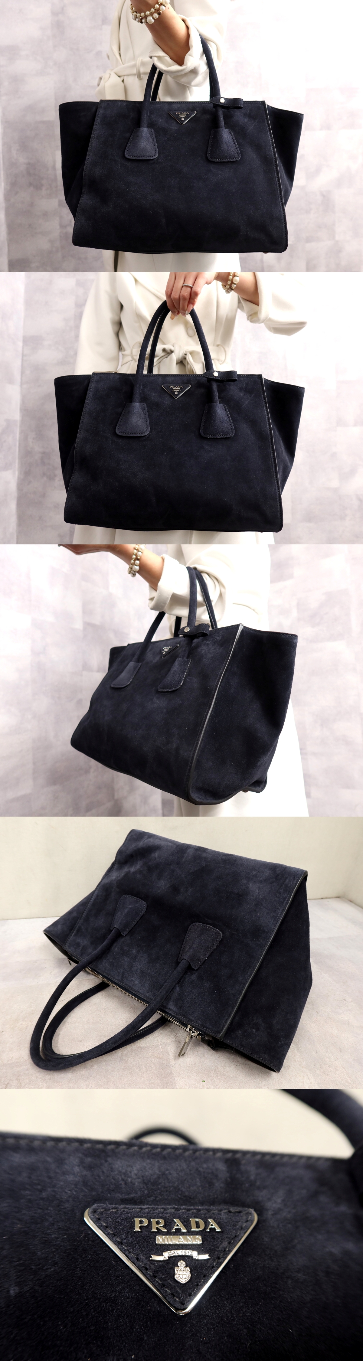 Product name: ●超美品●PRADA プラダ●三角ロゴプレート●スエード レザー 本革●ハンド バッグ●ネイビー●シルバー金具●イタリア製●A4●Js65424