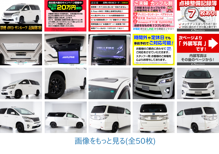 Store 【諸費用コミ】:平成25年 ヴェルファイア HV ZR 4WD サンルーフ 記録簿7枚 禁煙