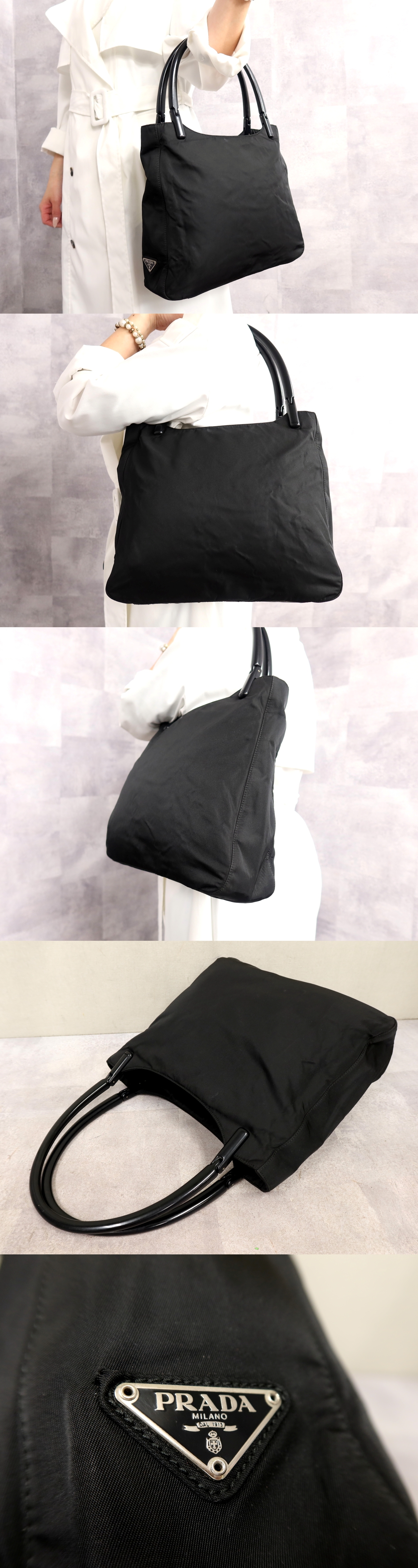 Product name: ●超美品●PRADA プラダ●三角ロゴプレート●プラスチックハンドル●ポコノ ナイロン●トート バッグ●黒●シルバー金具●B5 収納●Js66776