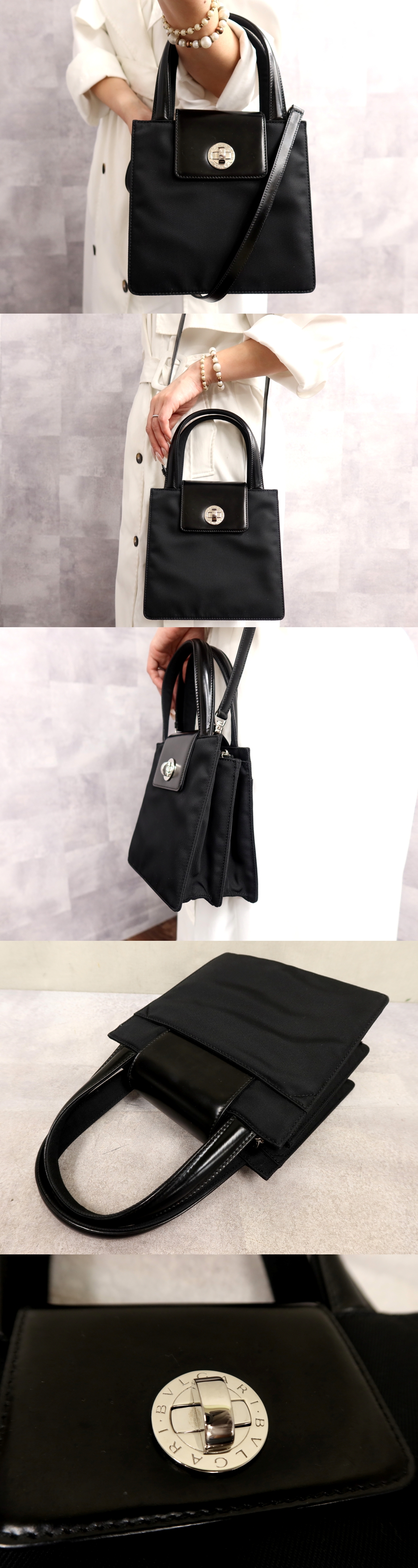 Product name: ●超美品●BVLGARI ブルガリ●ターンロック●ナイロン カーフ レザー 本革●2way ハンド バッグ●黒●シルバー金具●腕掛け●収納●Js67266